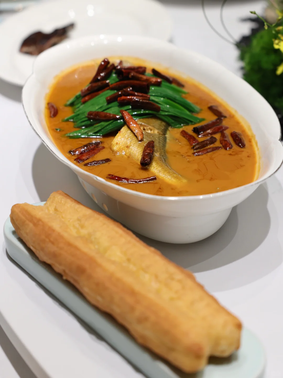 竹笙与胜瓜的清新,搭配罗定鱼腐的独特口感,这道菜品在保持传统风味的同时,更注重食材的新鲜和健康。鱼腐的软嫩与竹笙的爽脆,胜瓜的清甜,共同构成了一道色香味俱佳的佳肴。