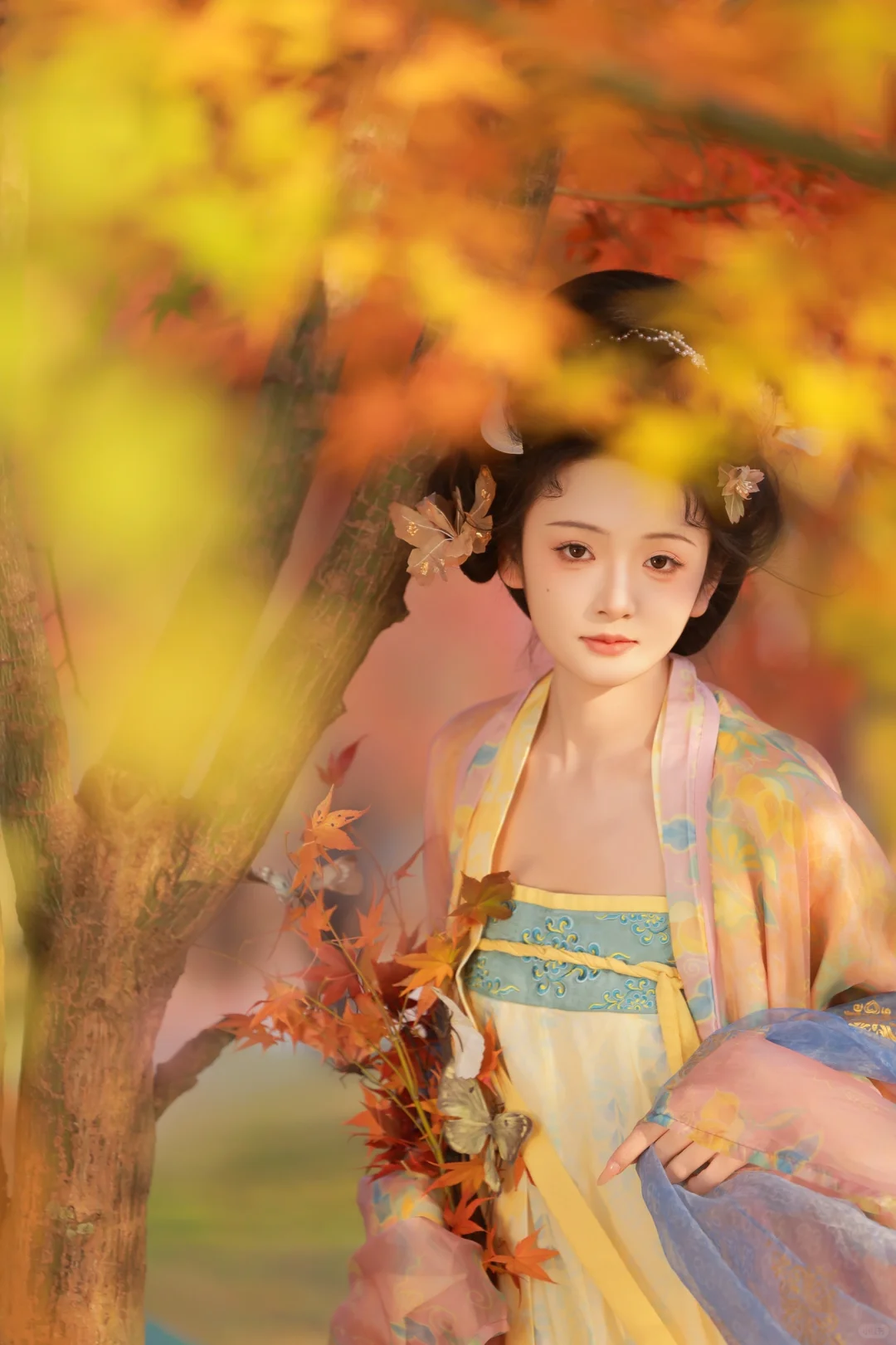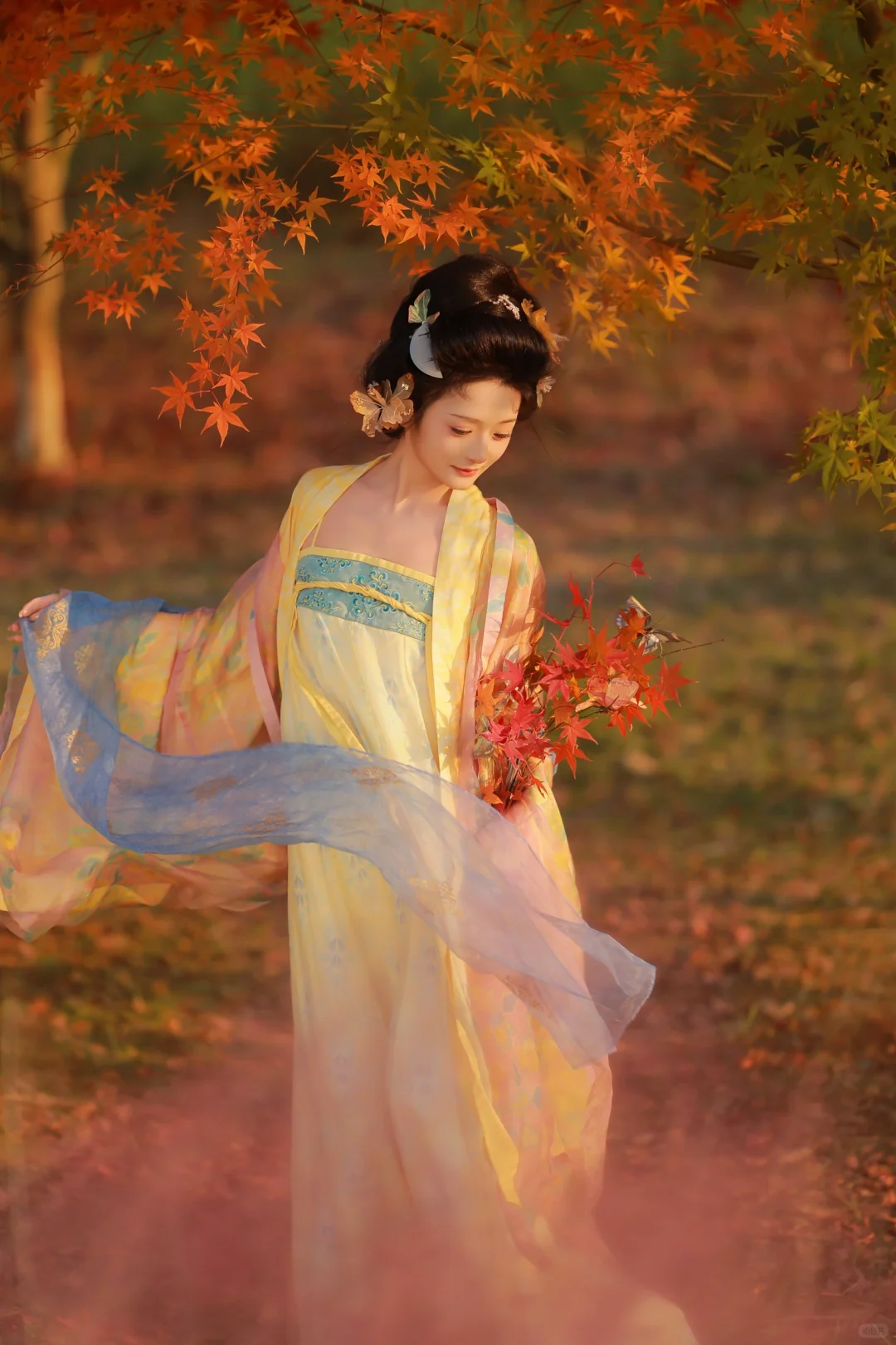 第一次拍到了古诗文笔下的秋色~ 更像一幅秋色画卷! 摄影/子浔 出镜妆造