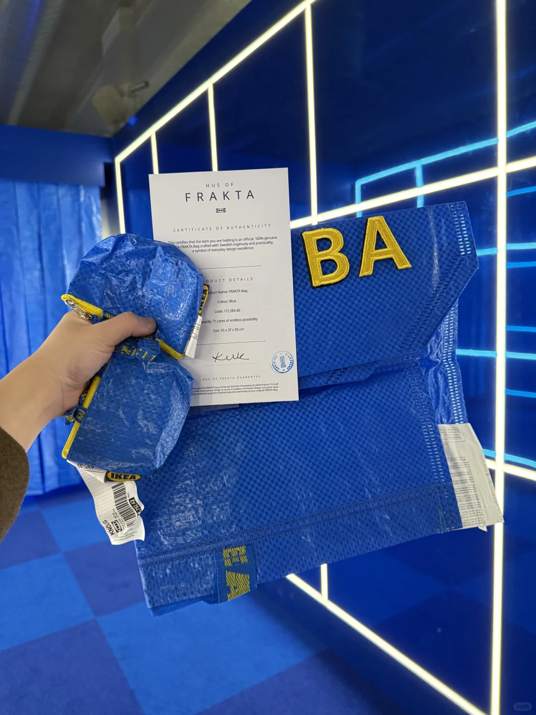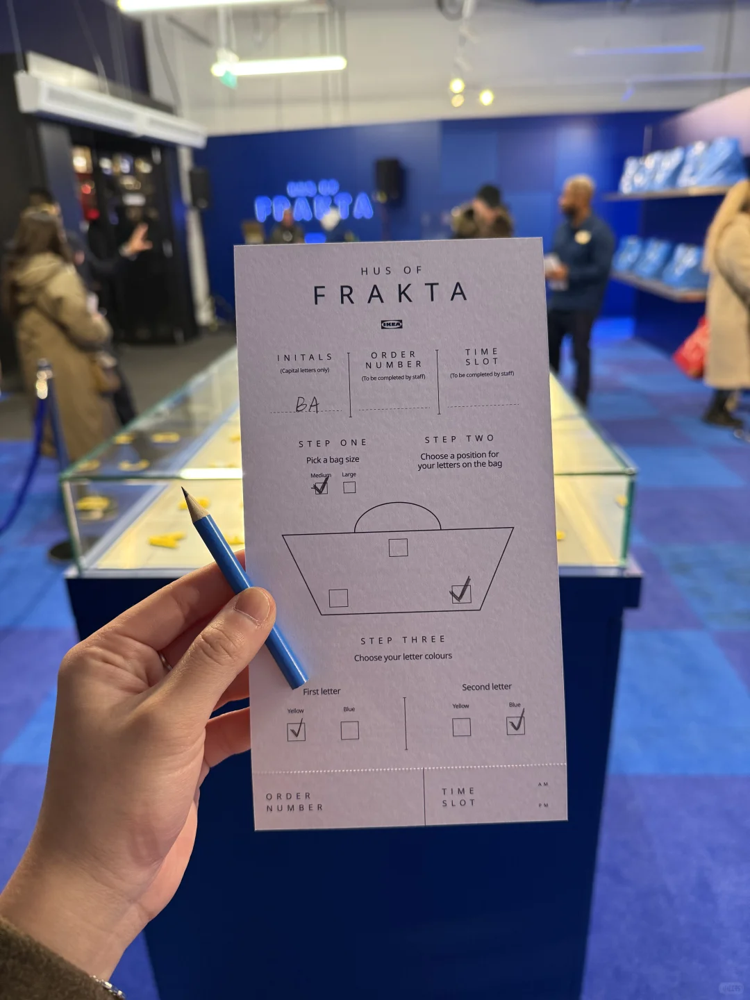 黑五去Oxford Street那边凑热闹,偶遇了Ikea的快闪店,于是成功收获了这个只要五毛钱的硕大定制款红白蓝胶袋[暗中观察R] 虽然除了用来搬家,并不知道这个大袋子还有什么用处,但出来的成品就是纯纯的很喜欢啊😭这个快闪一直到明年,家人们如果刚好去牛津街附近玩耍的话,可以去冲一下子吖嘻嘻[赞R] . 定制流程很简单,进去之后,到右边的counter拿一张order form填一下就ok了,袋子分两个size (medium和large),字母贴有黄色和蓝色两个颜色可以选[自拍R] 我个人反正觉得黄色会更加抢眼好看~ 最后collection的时候还会给一张certificate of authenticity,然后现场盖章、签字确认,真的是仪式感拉满[扯脸H] . btw不知道是不是错觉,感觉今年各大品牌的黑五促销力度好像还蛮有诚意的🤔 .
