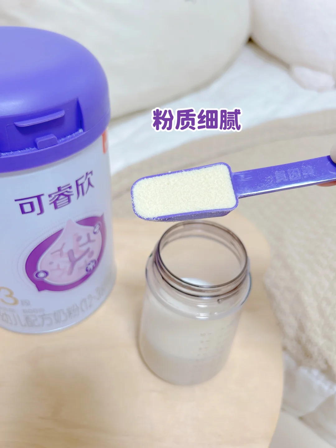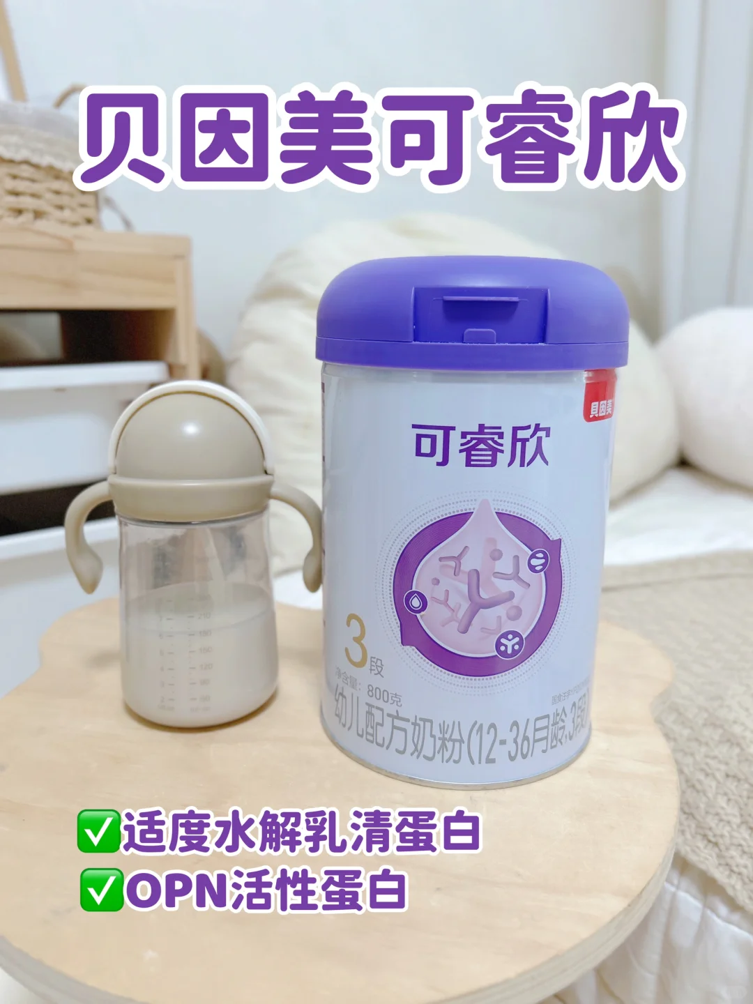 后来有经验的妈妈推荐我们喝适度水解乳清蛋白奶粉~做了功课后我们选择了贝因美可睿欣奶粉!