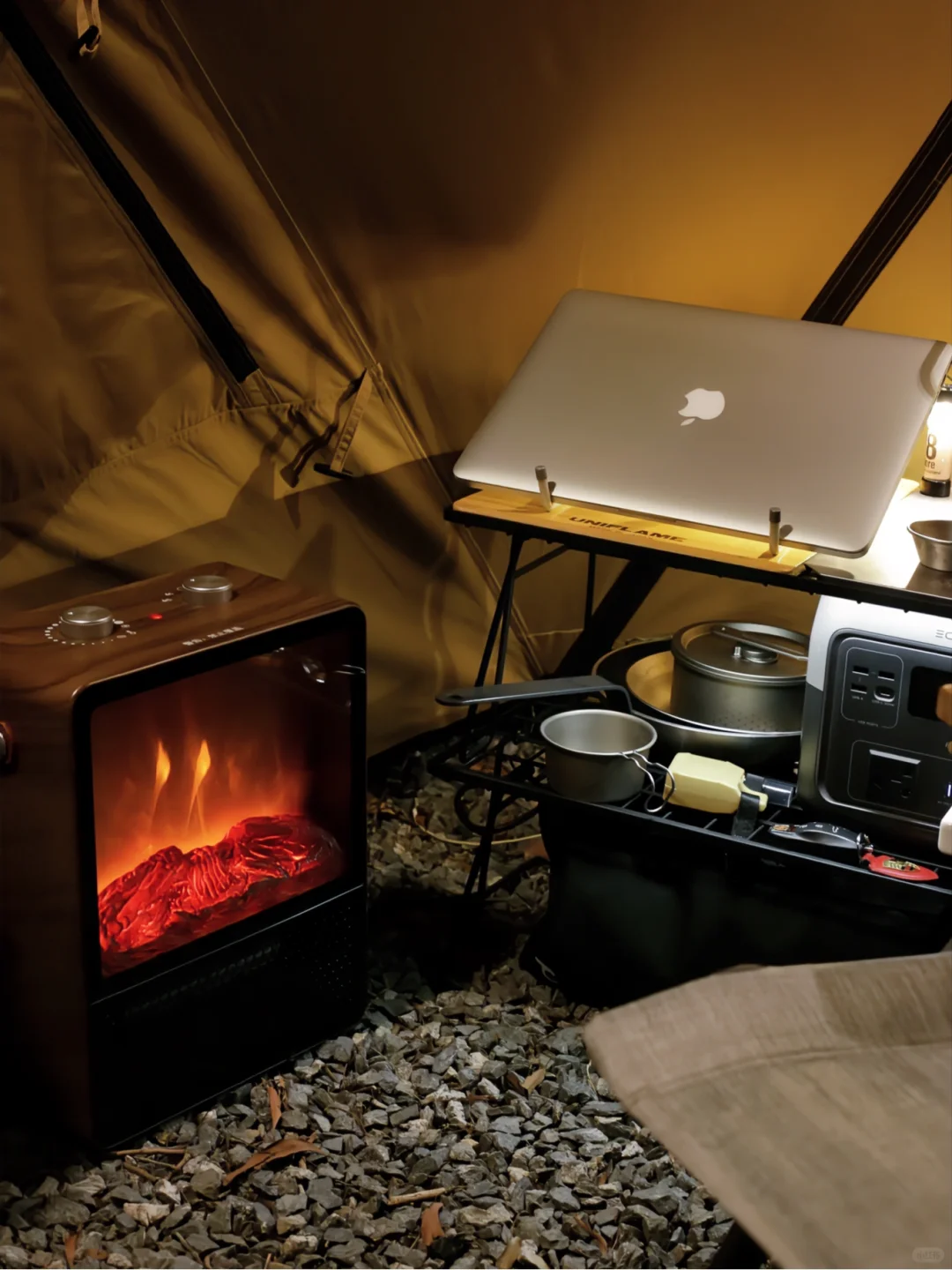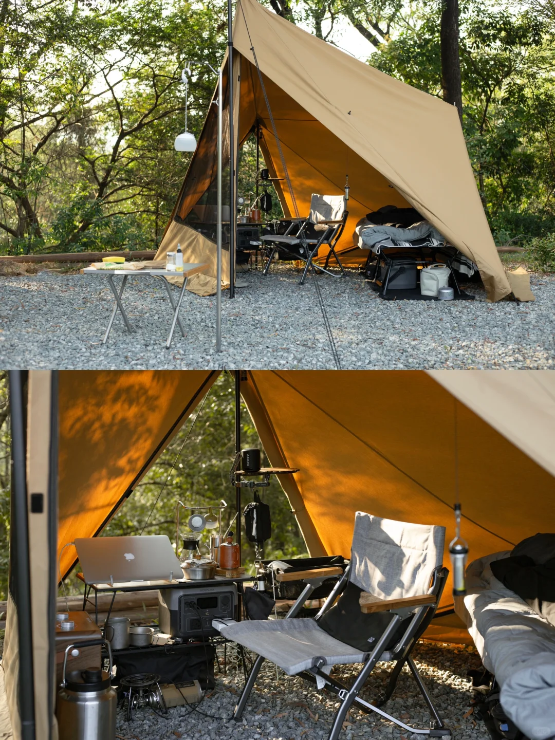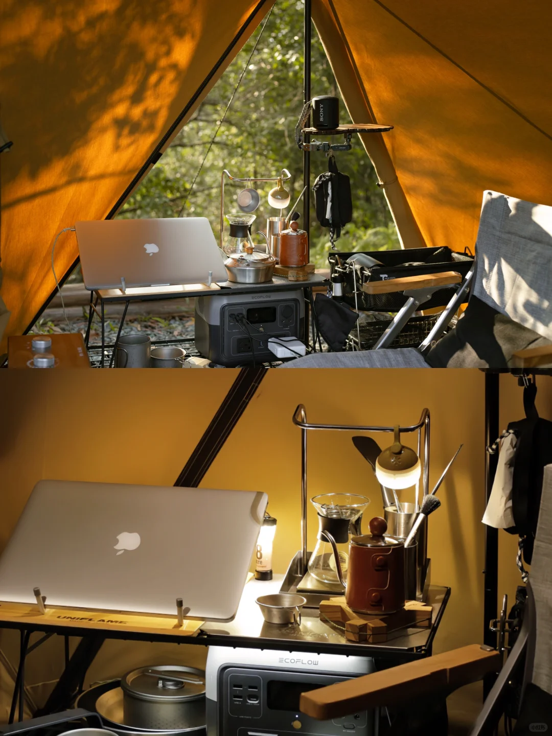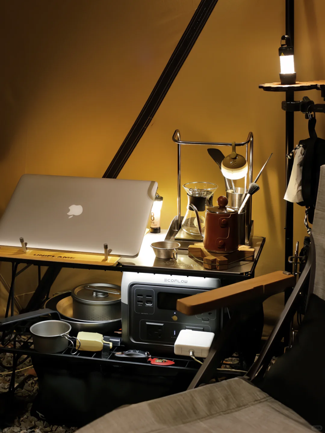 这次露营班味比较重,见谅了[doge]用简单的装配搭配了一个帐篷里的工作室,也挺舒服的。