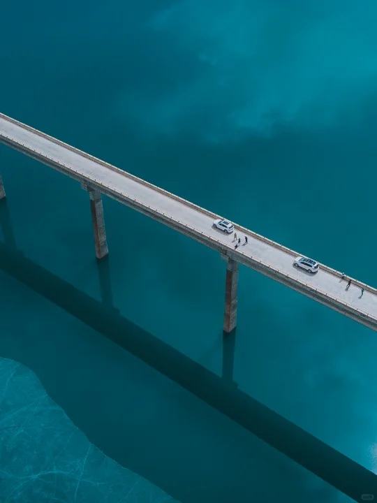 📍白沙湖 天气晴朗的时候,湖面会成县镜面效果,湛蓝的湖水上倒映这白沙山,一片静谧。
