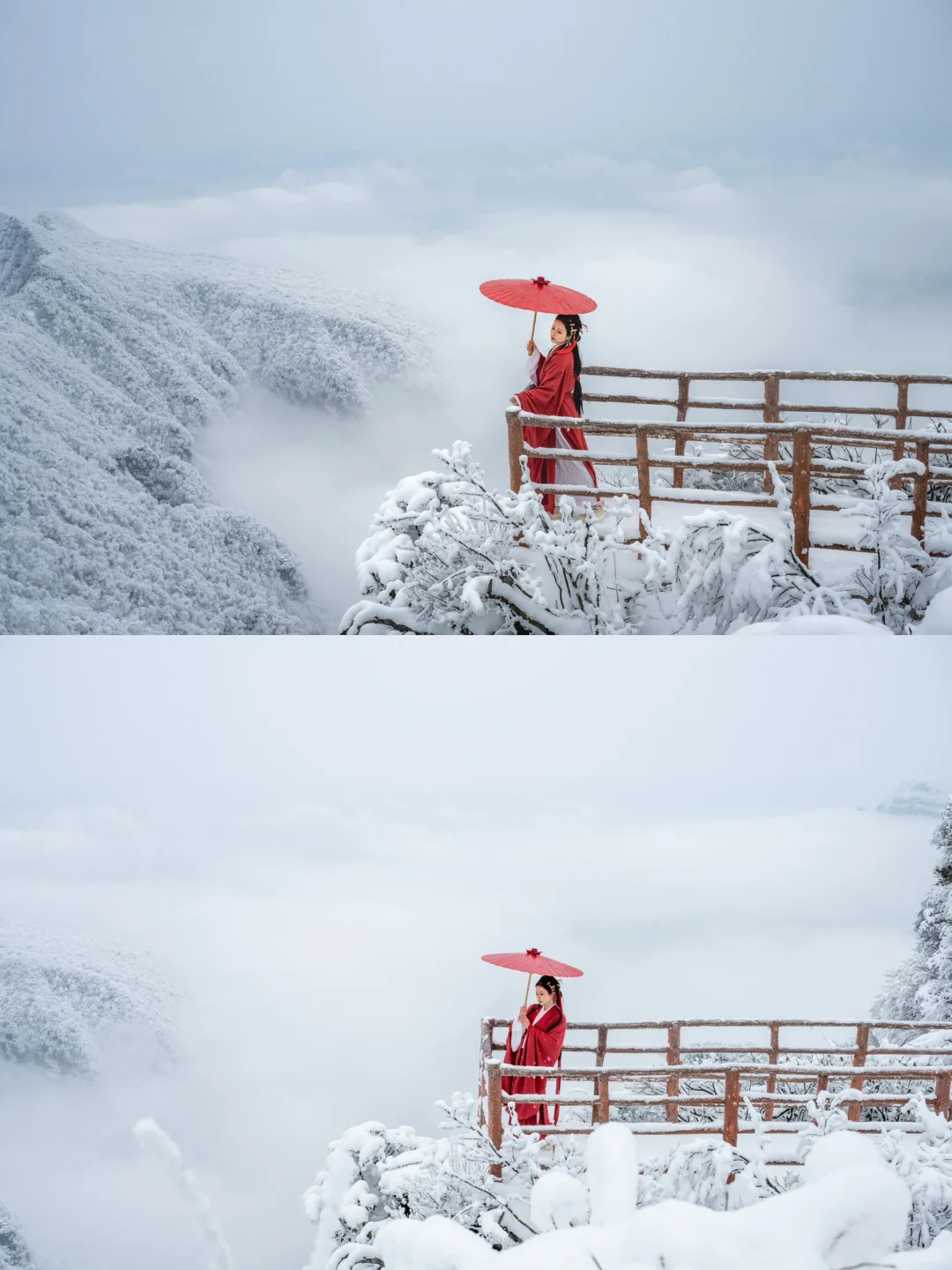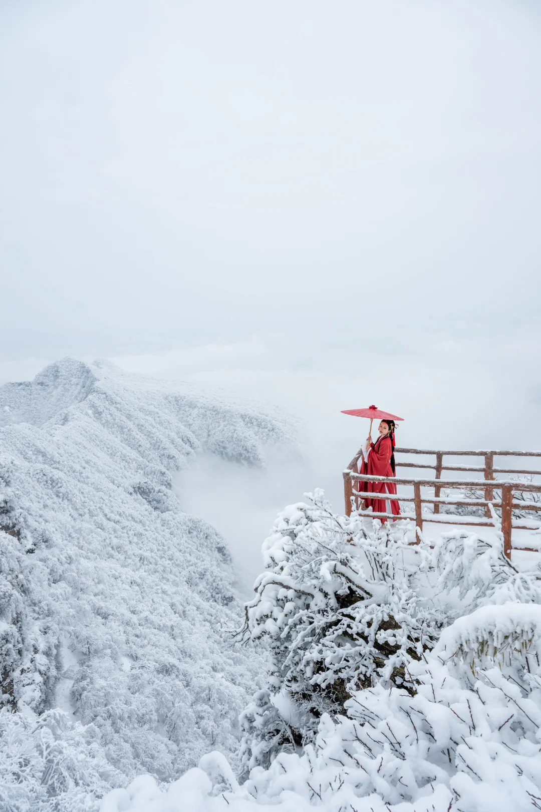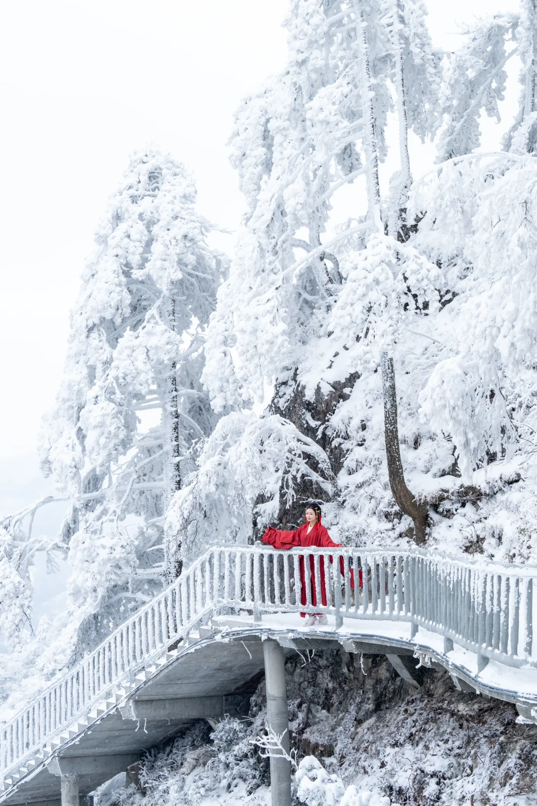 冬日旅行收藏夹 若有人兮山之阿,被薜荔兮带女萝~ 红衣白雪❄️ 误入南国绝美仙境🏔 🥋服装:战国袍 📍拍摄地:光雾山 📷出片打卡点:光雾山·✅燕子岭;米仓山·✅香炉山、✅黑熊沟、✅金色长廊(这里最出片) 光雾山的雪景❄️真的超美 整个风景和背景呈现真的很大气 而且不得不说 雪地里的战国袍真的很白月光💖 目前不论是光雾山旅游景区 还是米仓山旅游景区 都是🎫门票🈚️的 想出片📸的集美 放心冲~👏