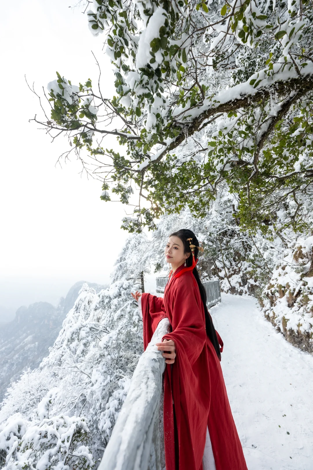 在光雾山拍的‼️红色战国袍与雪景简直绝配!