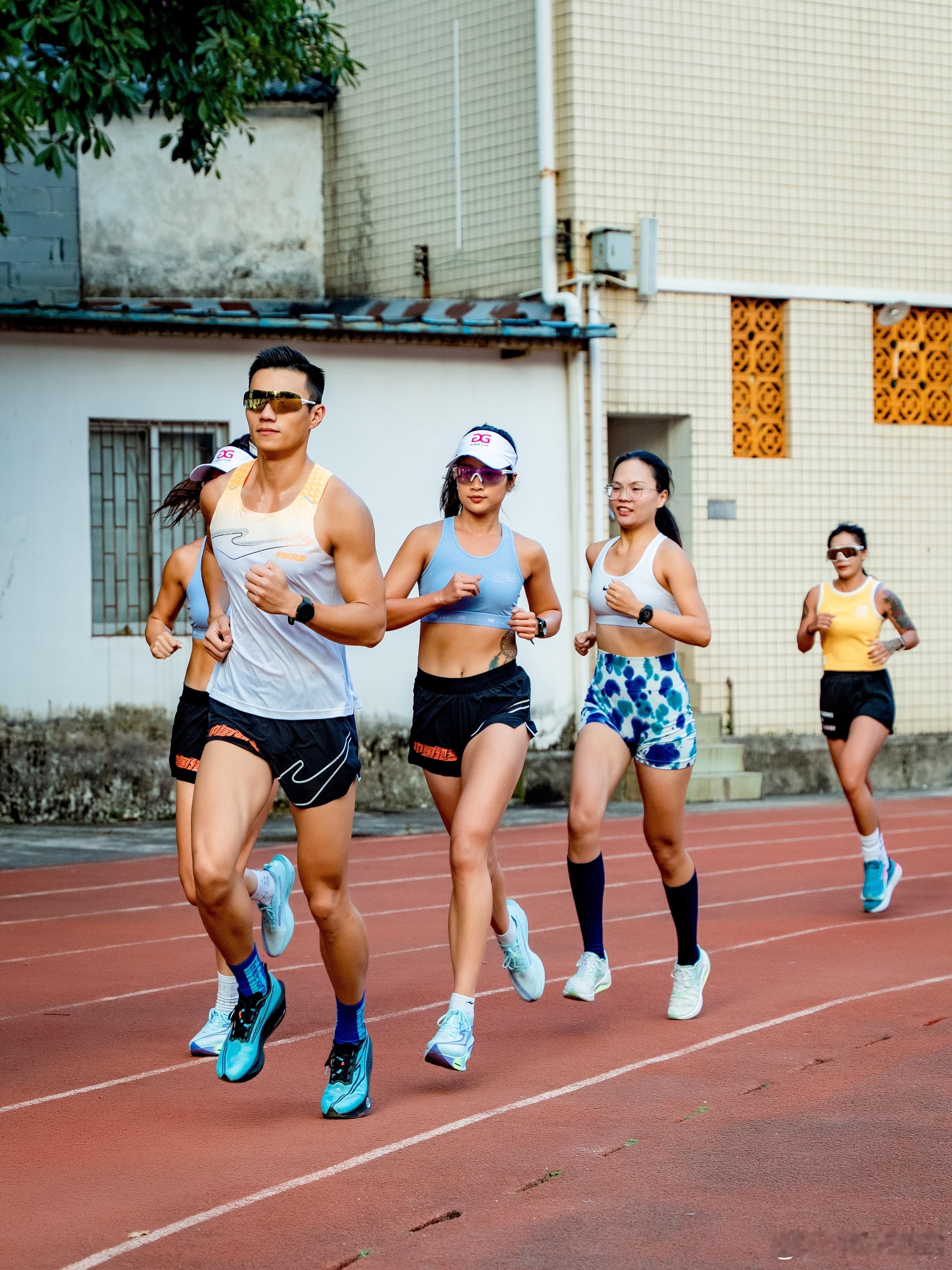 每周的间歇日和姐妹们约着一起变强还有3大帅哥教练带领我们跑前没吃早餐补给一条安维