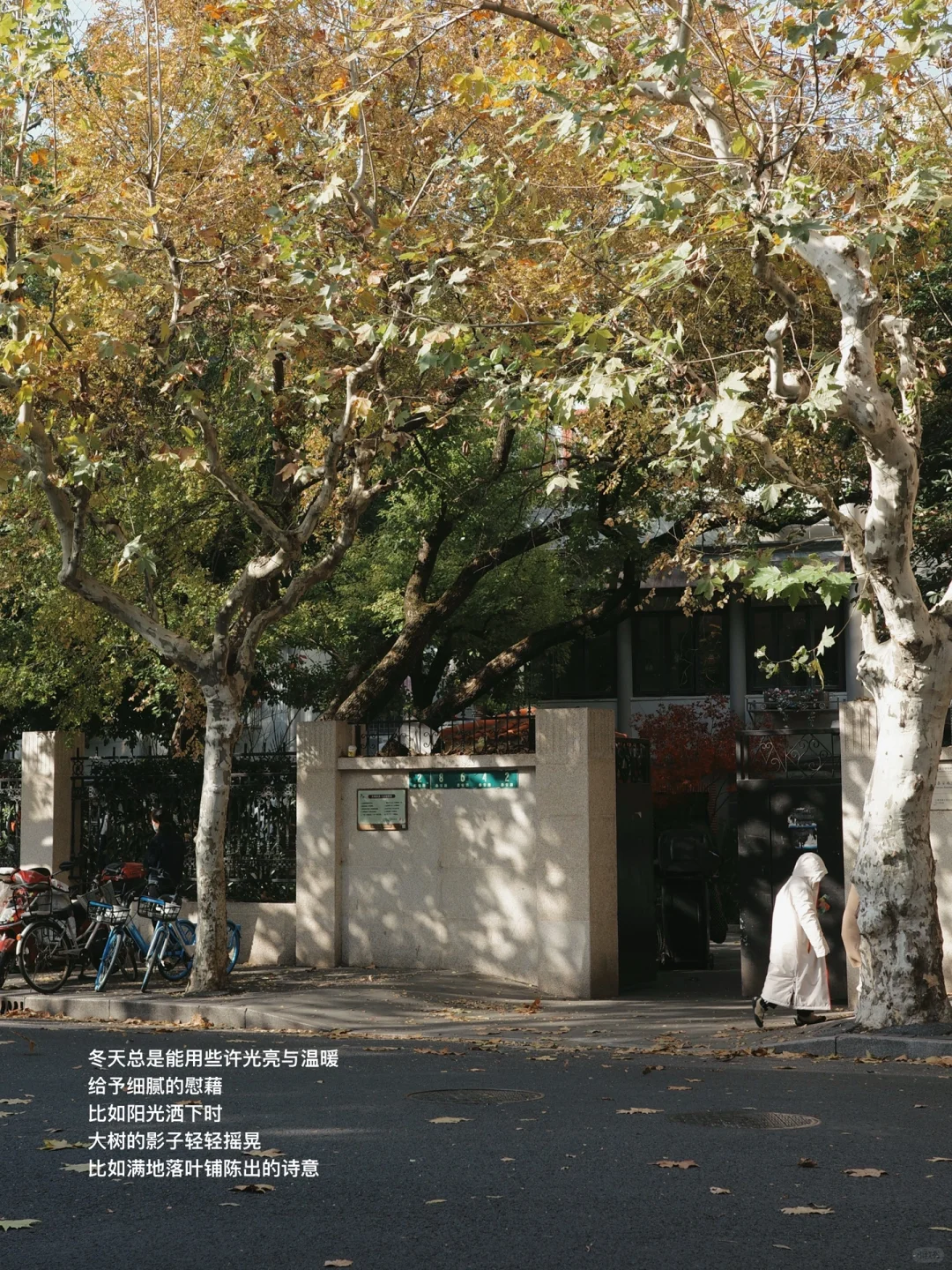 我时常会因冬天的夜晚垂头丧气,也会在清晨拉开窗帘时,被薄纱般清透的空气照亮。冬天总是这样矛盾,一面是寒冷和漫漫长夜带来的沉寂,一面又用些许光亮与温暖,给予细腻的慰藉。比如阳光洒下时,大树的影子轻轻摇晃,比如满地落叶铺陈出的诗意。