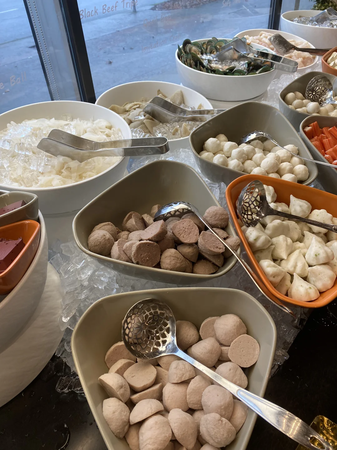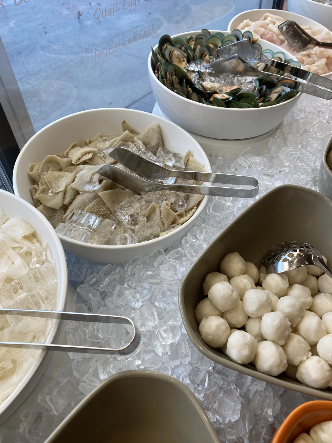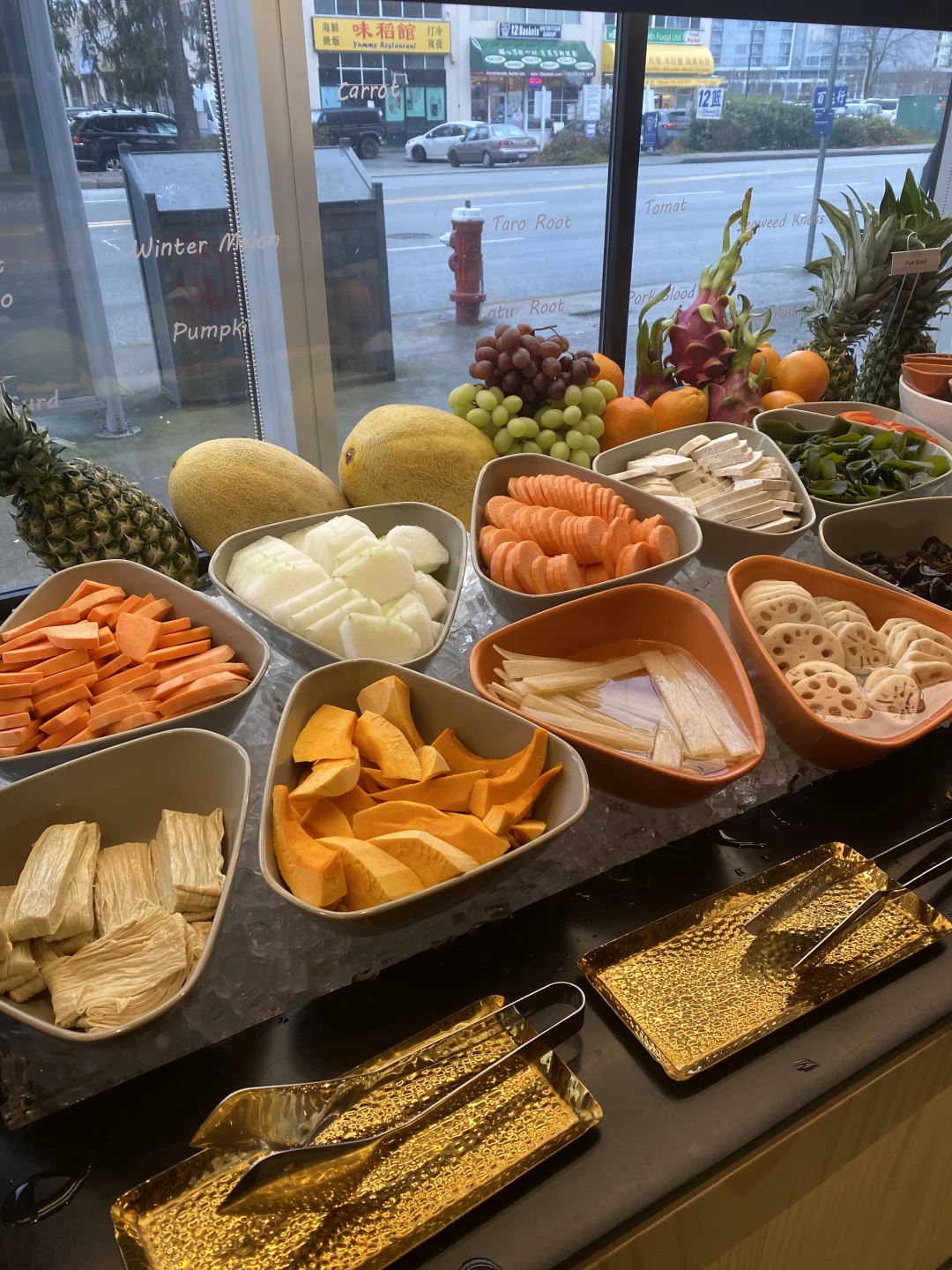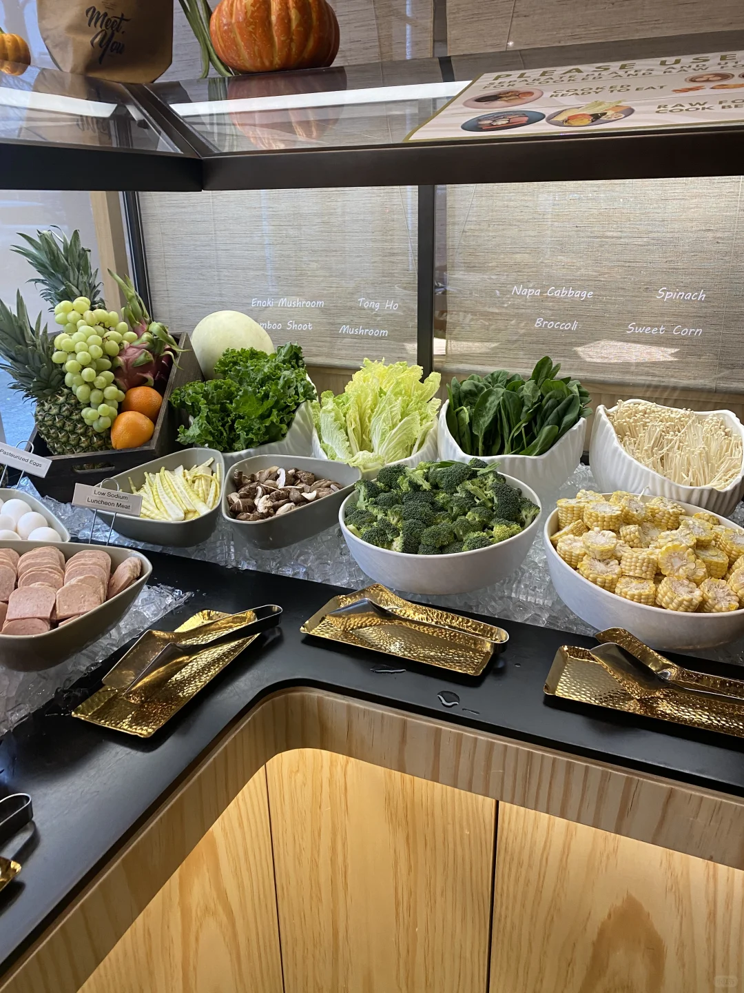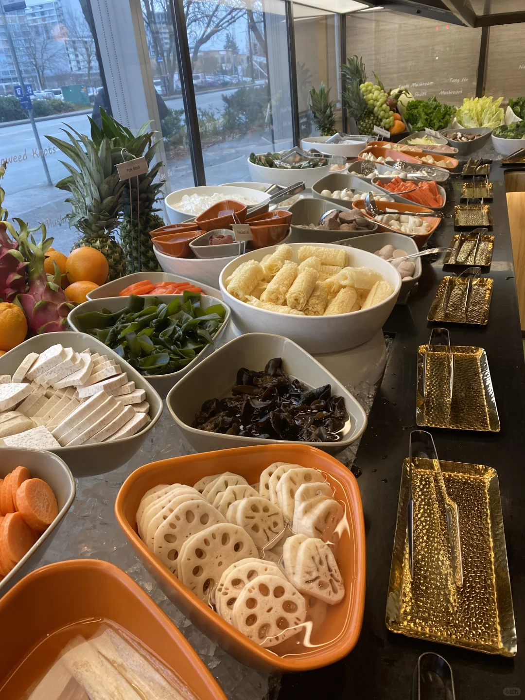 [种草R]蔬菜可以去自己拿,随便拿,这个简直太好了,一个人可以每样都吃1-2片,蔬菜非常新鲜,米饭,面条,炸馒头,主食类也是随便自己拿,水果,泡菜毛豆,糖水那些跟豆捞一样,任食随便拿,瞎滑需要单点,大概是9-10