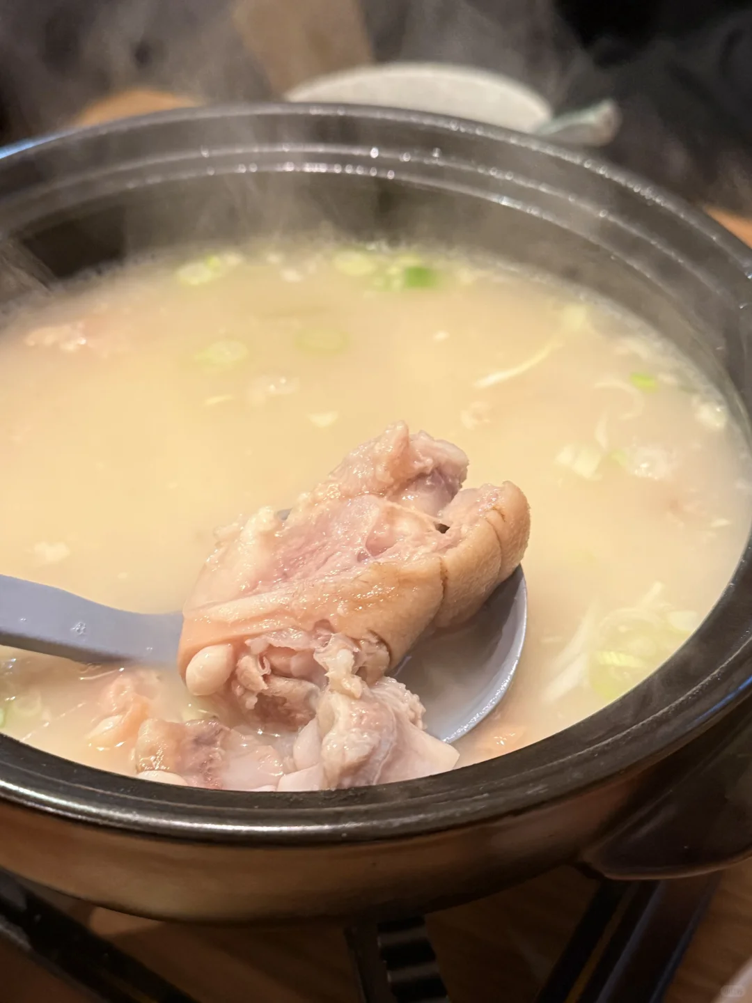 蹄花汤是朋友要点的,本来还有点担心喝起来会觉得油,但其实并没有,喝起来蛮comforting的,猪蹄煲得很软糯🐷