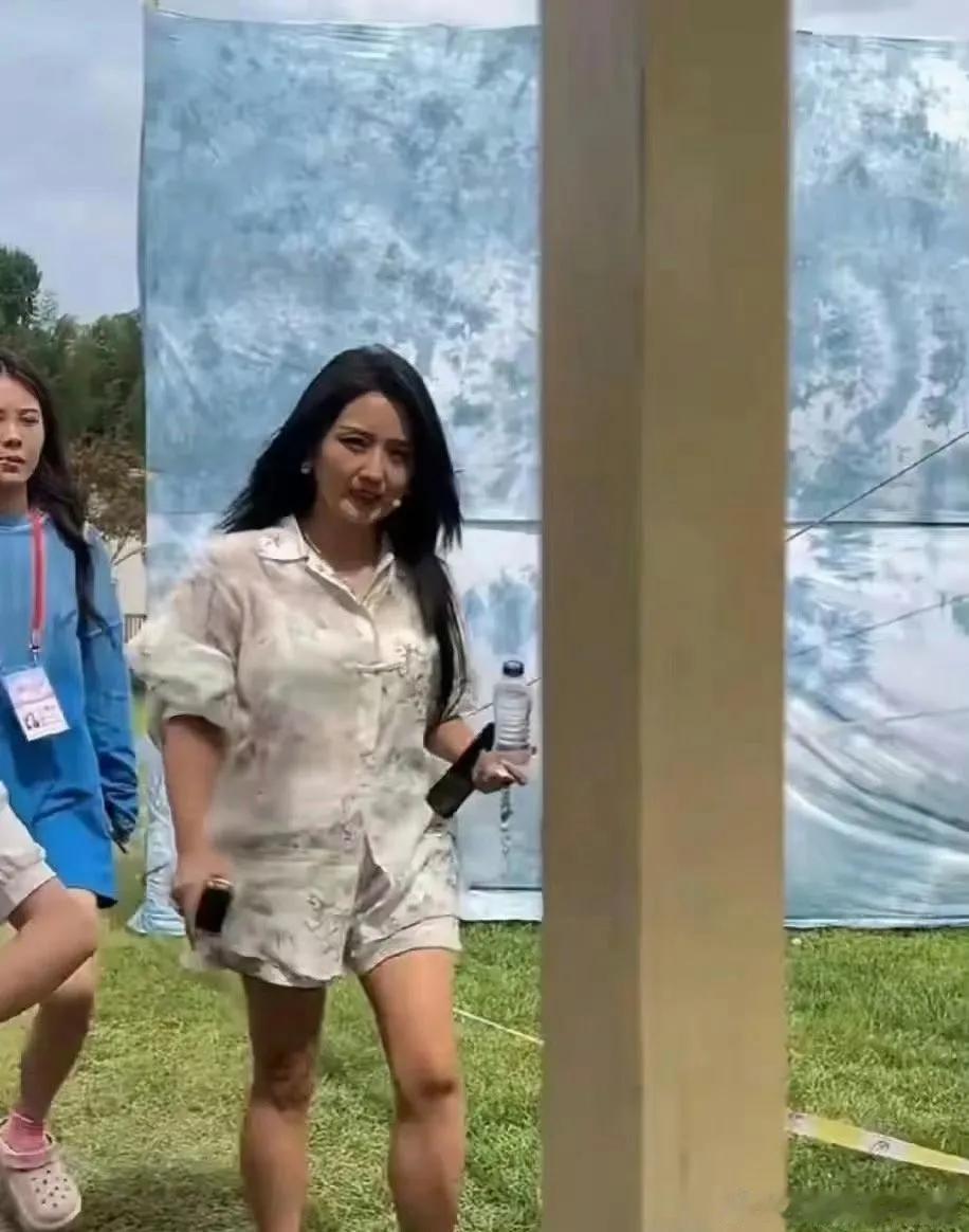 吴艳妮在成都穿着短裤大腿看起来很粗壮,表情自信又张扬