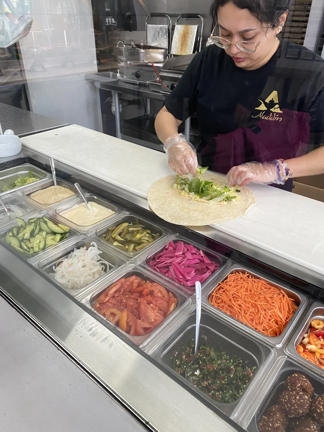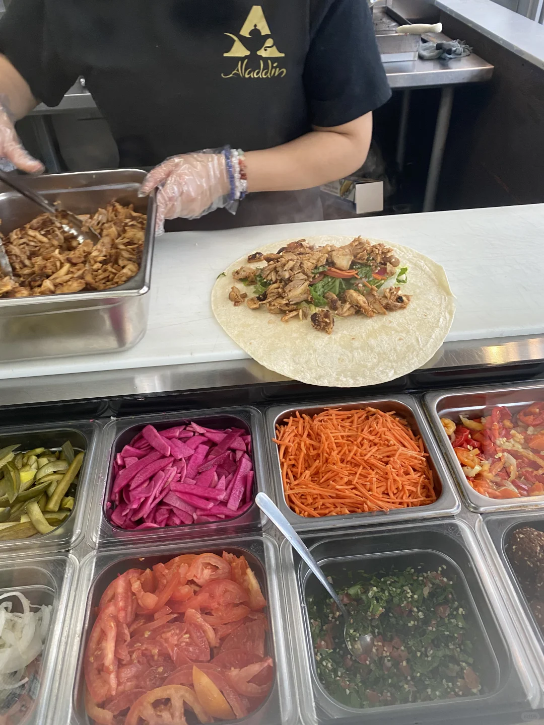 [种草R]先是在Rosbon st选了一家中东鸡肉卷,这家店环境很好,很干净,可以坐下来慢慢吃,我接受不了路边摊,一边走一边吃,感觉会吐出来🤮(纯个人习惯,不同意见的小伙伴不用跟我说“你可以边走边吃),味道不错,没有那股中东奇怪的味道,吃鸡肉卷我很怕吃到那股怪味,无法形容
