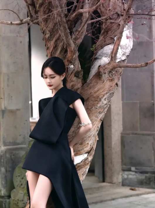 李一桐这次的造型直接惊艳全场!她穿着一袭黑色露肩礼服亮相,那礼服的黑色神秘又高级,衬得她的气质愈发出众。露肩的设计巧妙地展现出她优美的肩颈线条,增添了一丝小性感。整体上看,她站在那里端庄大气,一举一动都散发着优雅的魅力,实在是美艳动人,让人移不开眼,不愧是时尚感满满的女神!