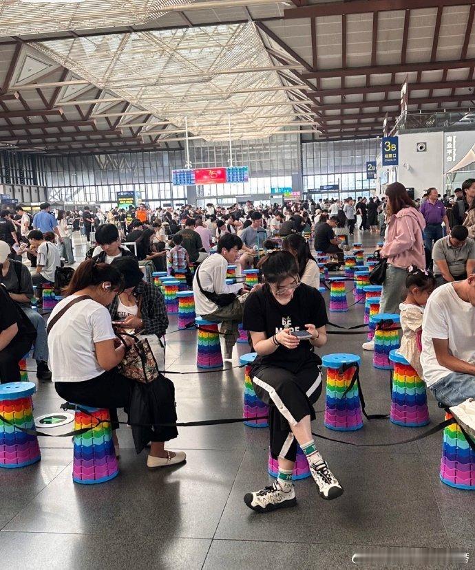 苏州对游客真的很贴心,火车站满地的临时板凳而且都连着的不怕被薅走