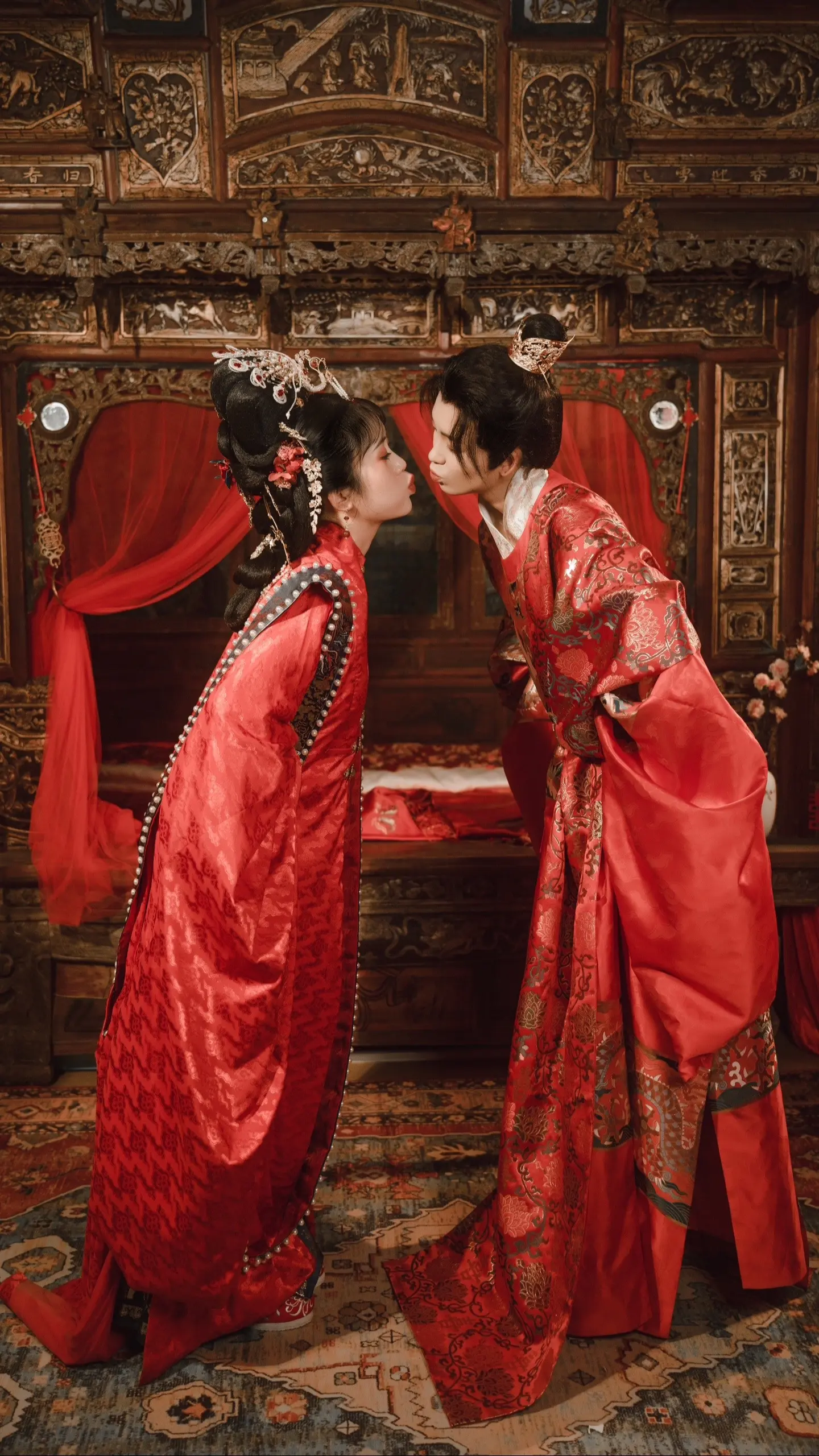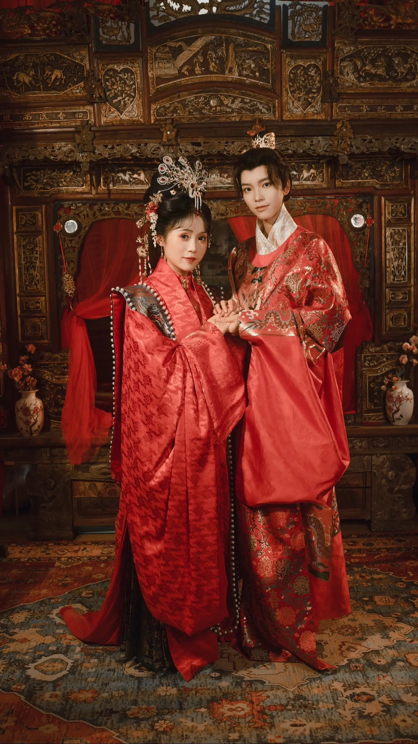 看了九重紫!那不得拿出去年拍的明制婚服披红