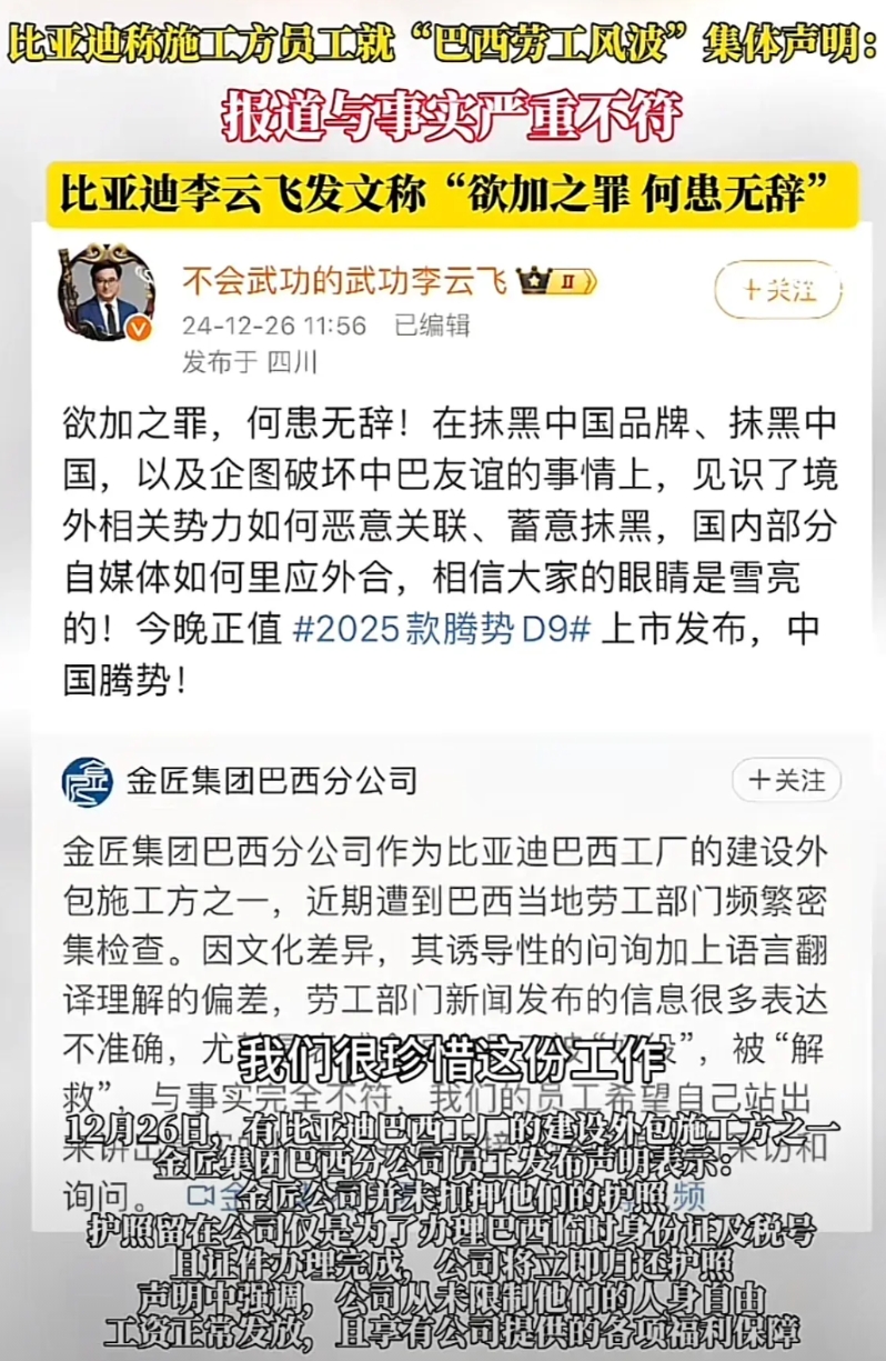 对此外包方金匠公司和比亚迪公关部经理李云飞都第一时间回应澄清,认为巴西劳工部的说法纯属子虚乌有,是有人故意抹黑
