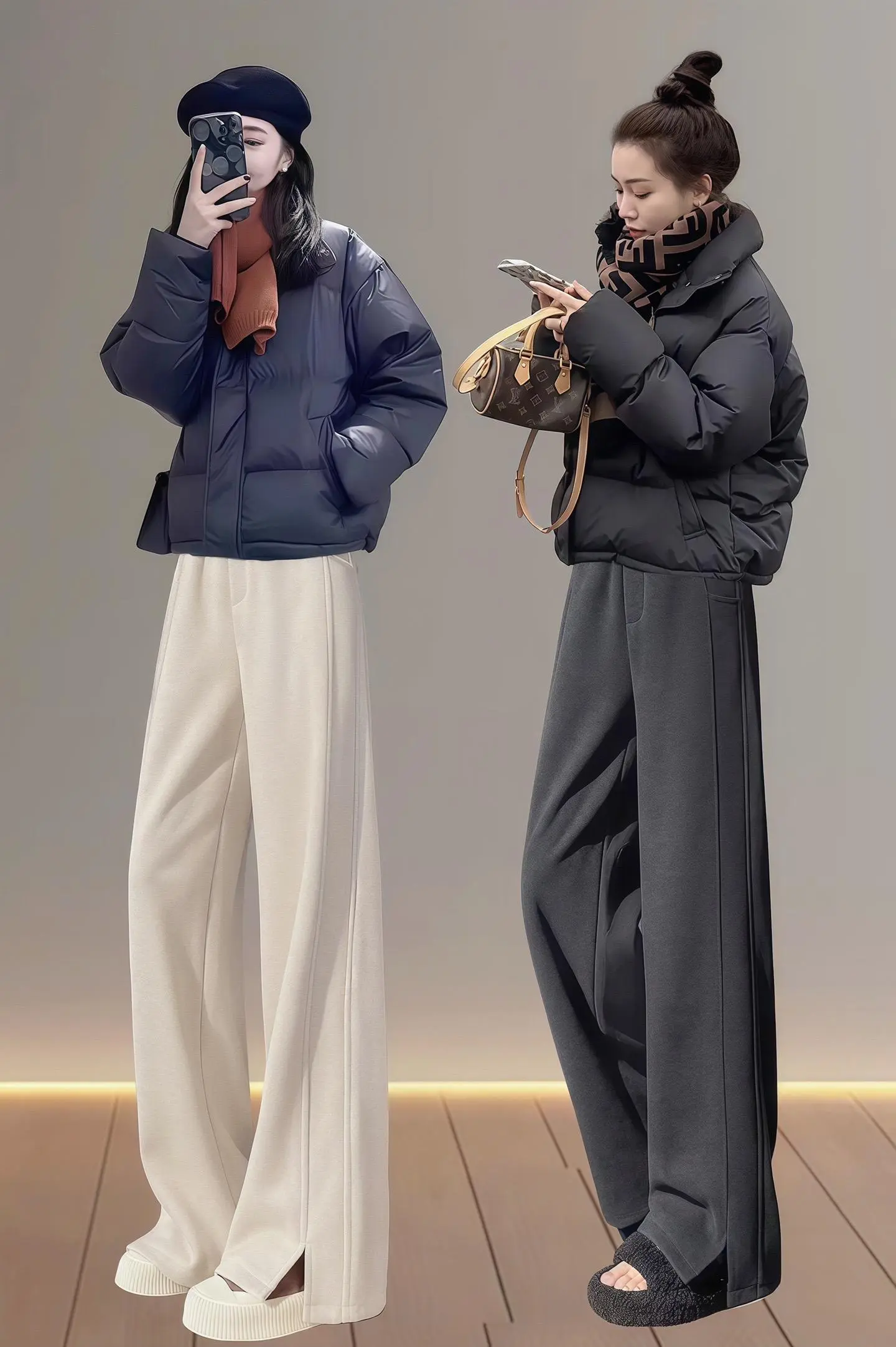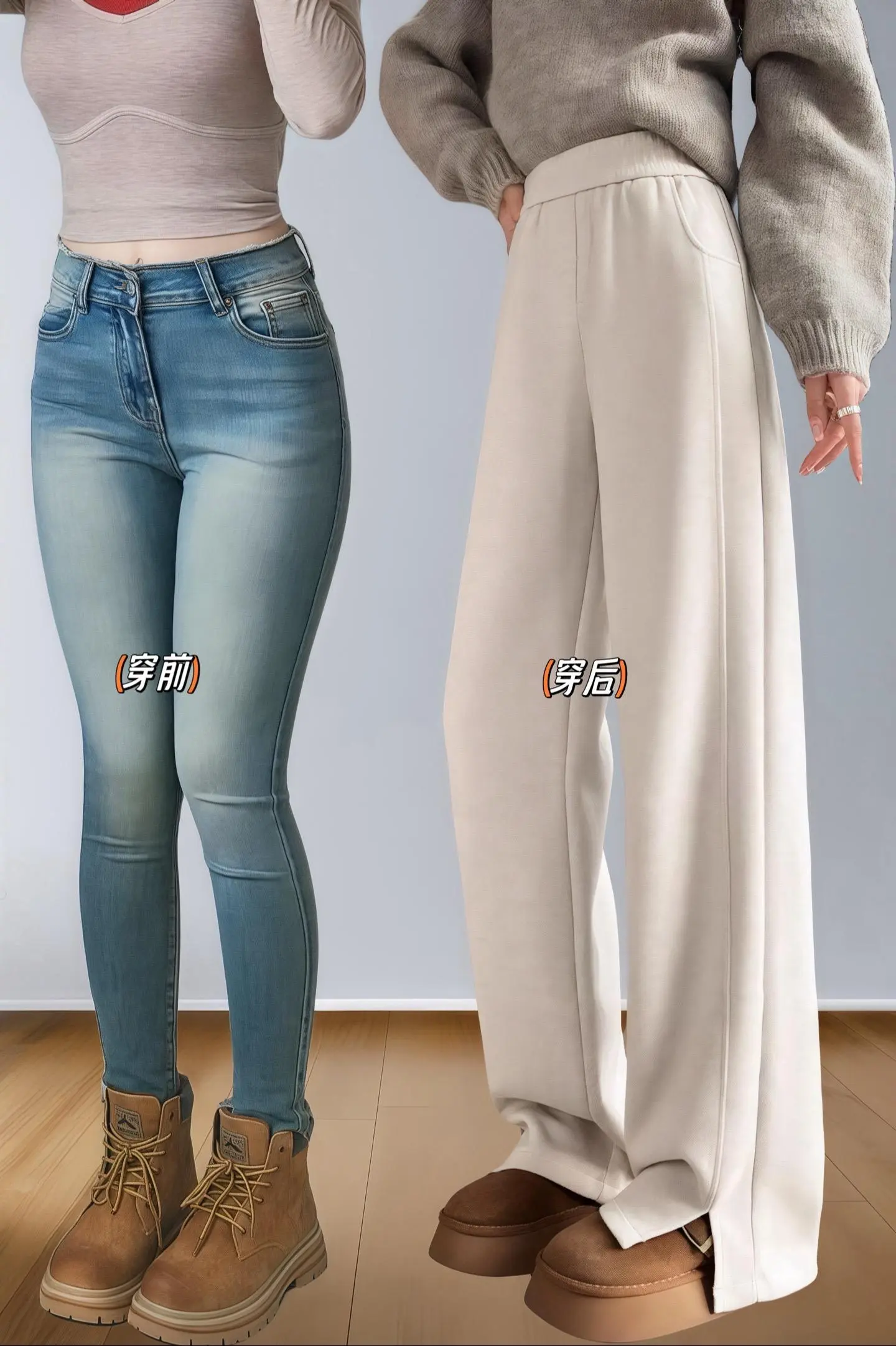 冬季人字纹开叉阔腿裤!加绒加厚保暖!质感满满,版型显瘦显腿长~休闲百搭不挑人不挑身材年龄
