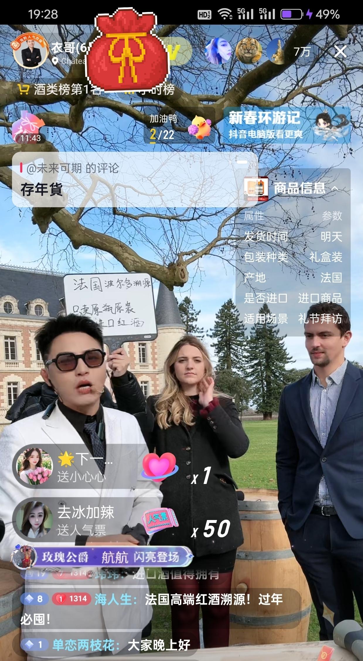 点进衣哥直播间囤年货了,兄弟们,在法国带红酒。