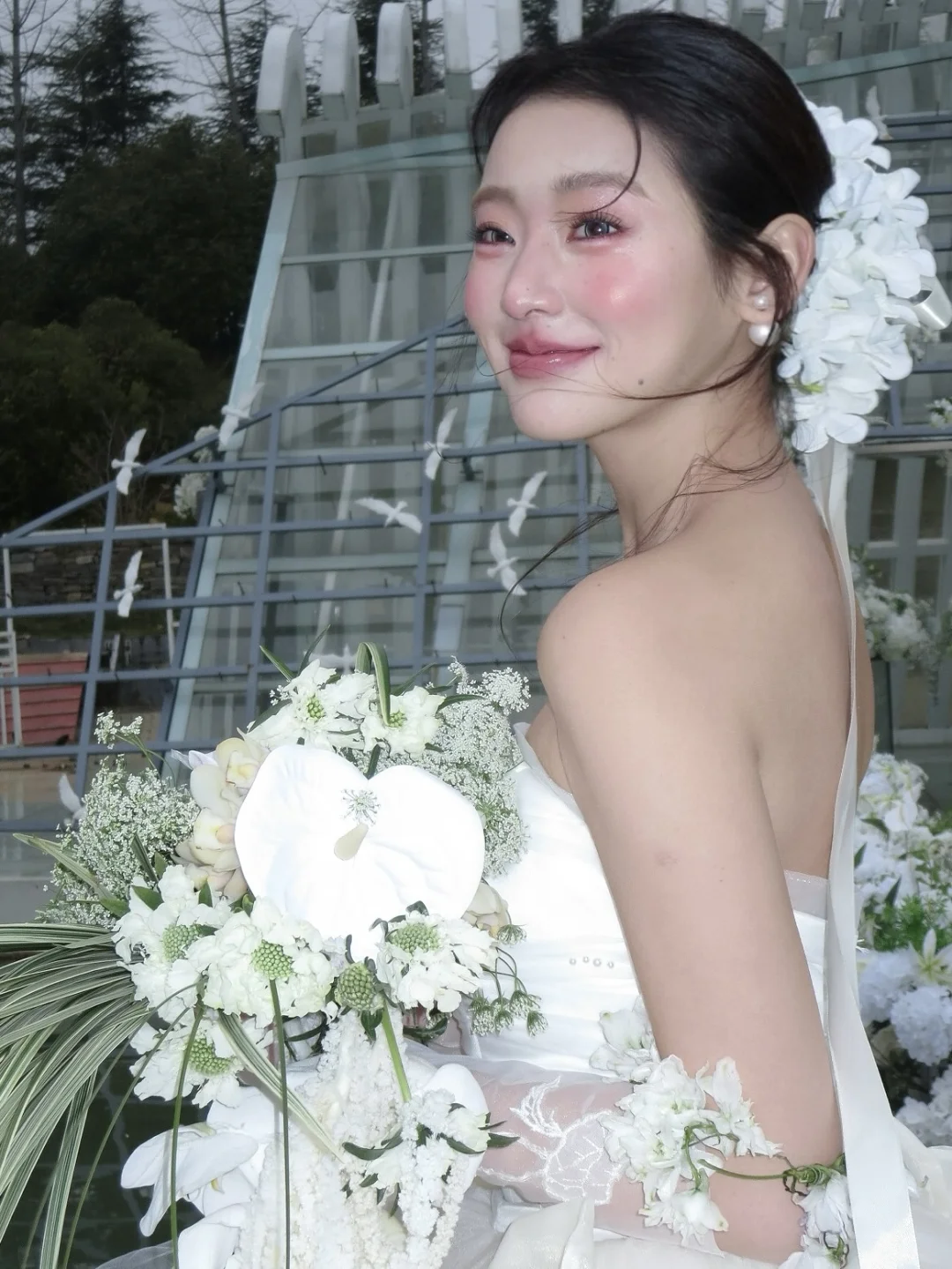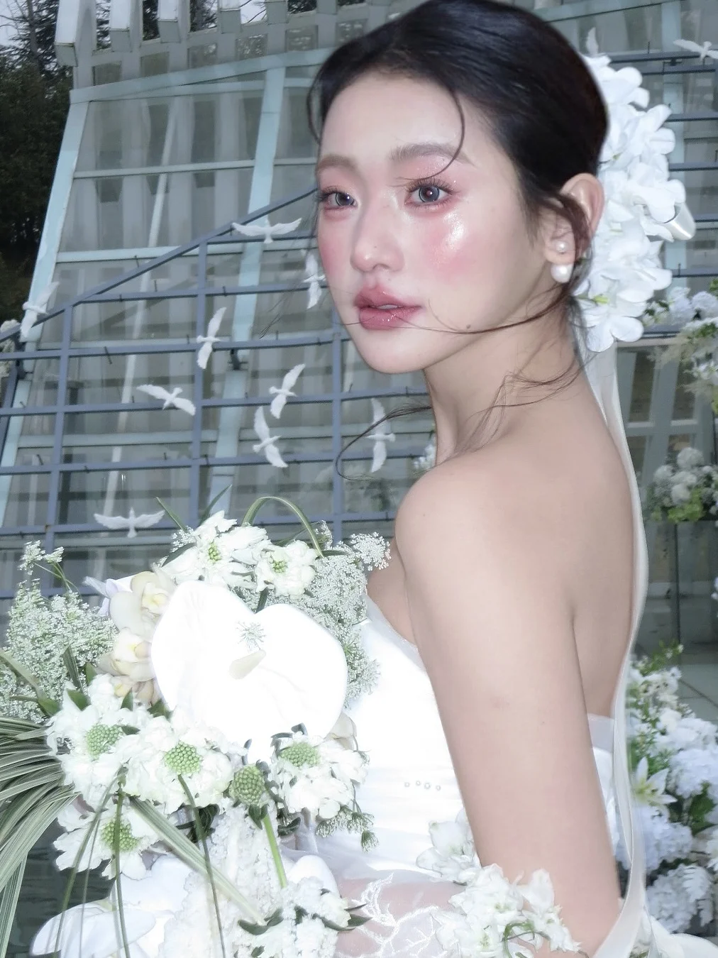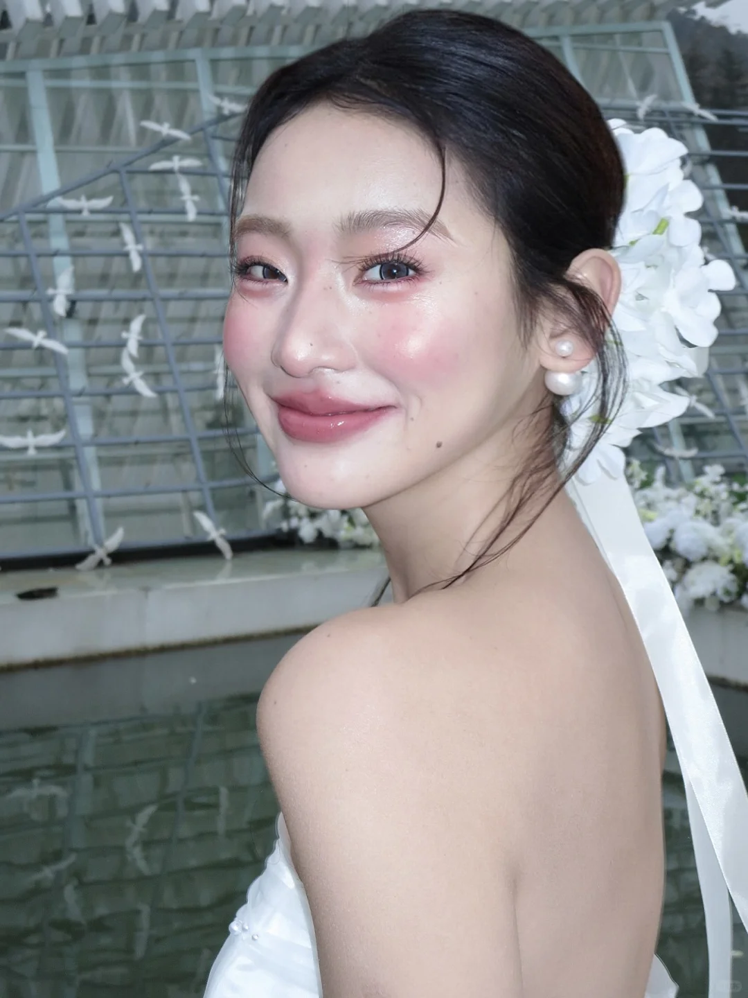 鲜花造型 干净清透妆面 新娘妆容 ins风 妆容分享 今日妆容 2025婚纱照韩系 韩系妆容