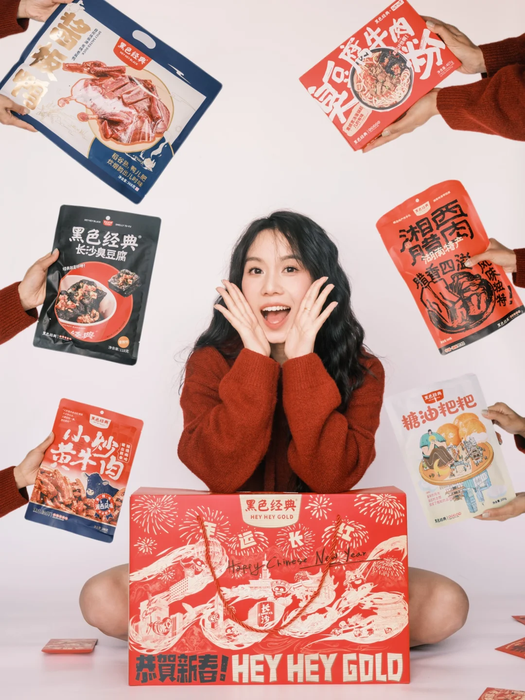 🌈年货节礼盒红黑金配色,满满的新年氛围感,主题的“年运长红”是对2025的美好祝愿,新年送礼选这个,真是送到心坎上了~而且线上线下共计10个套餐,大家选择多多~