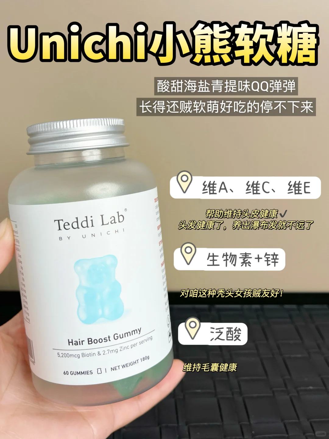 关键2颗小熊🐻就有5200mcg生物素,含量很足!