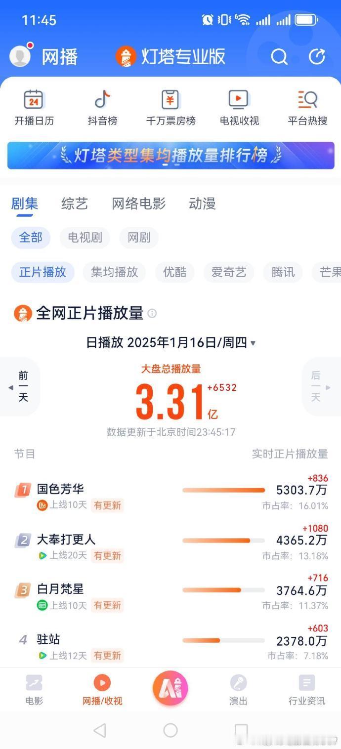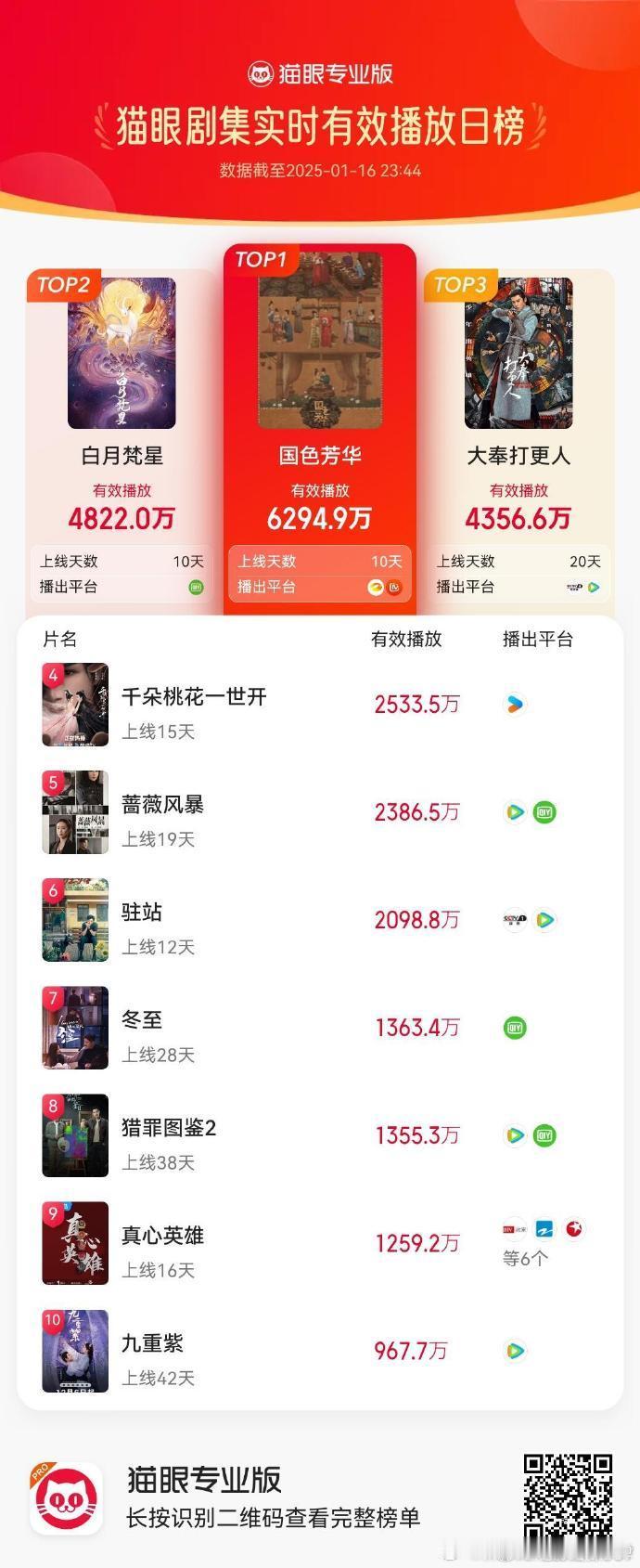 国色芳华灯塔猫眼有效播放双登顶国色芳华猫眼灯塔有效播放双登顶1月16日《国