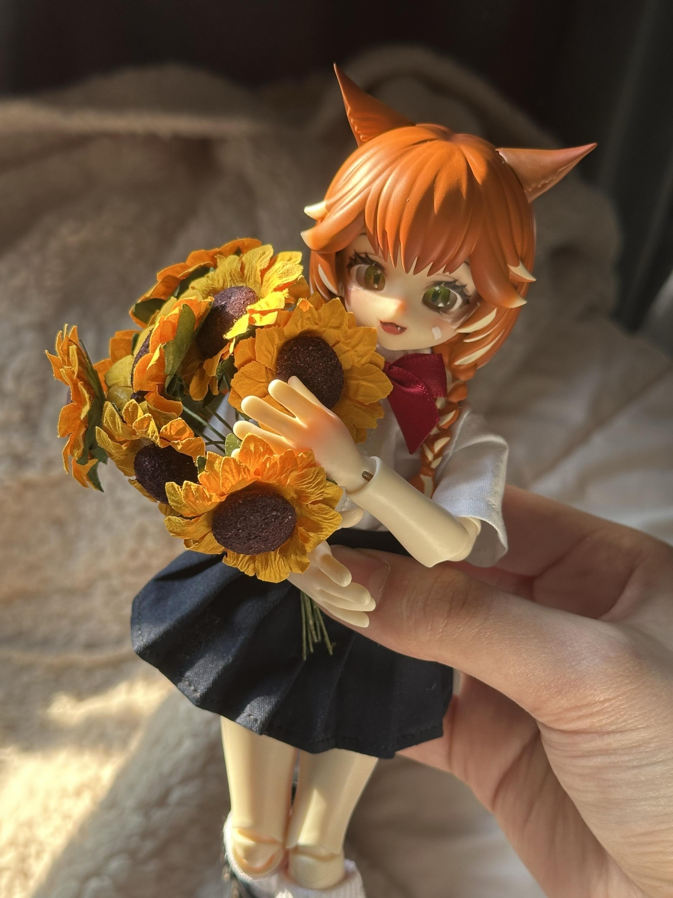 🌻🌻🌻🐈。小猫腼腆的向你打招呼,并且抱着一束向日葵向你跑来🥰🥺🤲