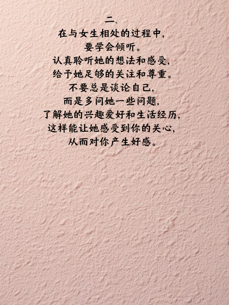 一、恋爱新手们注意啦,想要让女生对你一见钟情,首先要注重自身的形象。干净整洁的穿着,得体的举止,都能给女生留下良好的第一印象。不要过于刻意打扮,而是展现出最真实的自己,让她感受到你的真诚。 二、在与女生相处的过程中,要学会倾听。认真聆听她的想法和感受,给予她足够的关注和尊重。不要总是谈论自己,而是多问她一些问题,了解她的兴趣爱好和生活经历,这样能让她感受到你的关心,从而对你产生好感。 三、要有自己的个性和魅力。不要随波逐流,而是展现出独特的一面。可以培养一些自己的兴趣爱好,比如音乐、绘画等,在与女生交流时分享这些,让她看到你的丰富多彩。同时,要保持积极乐观的态度,传递正能量,让她愿意靠近你。