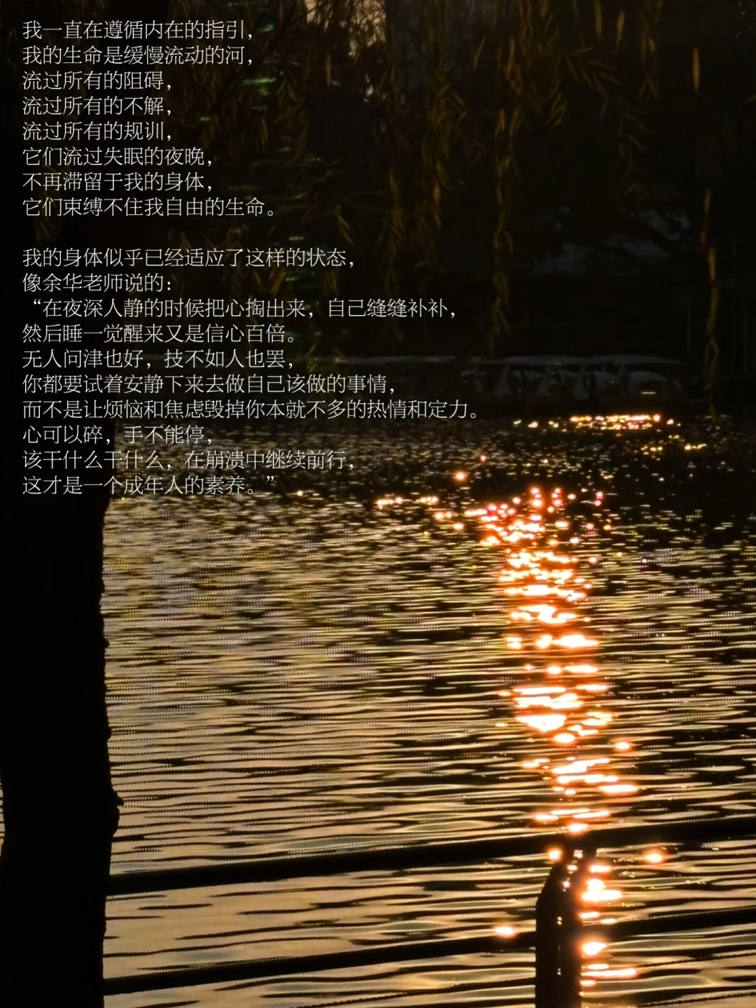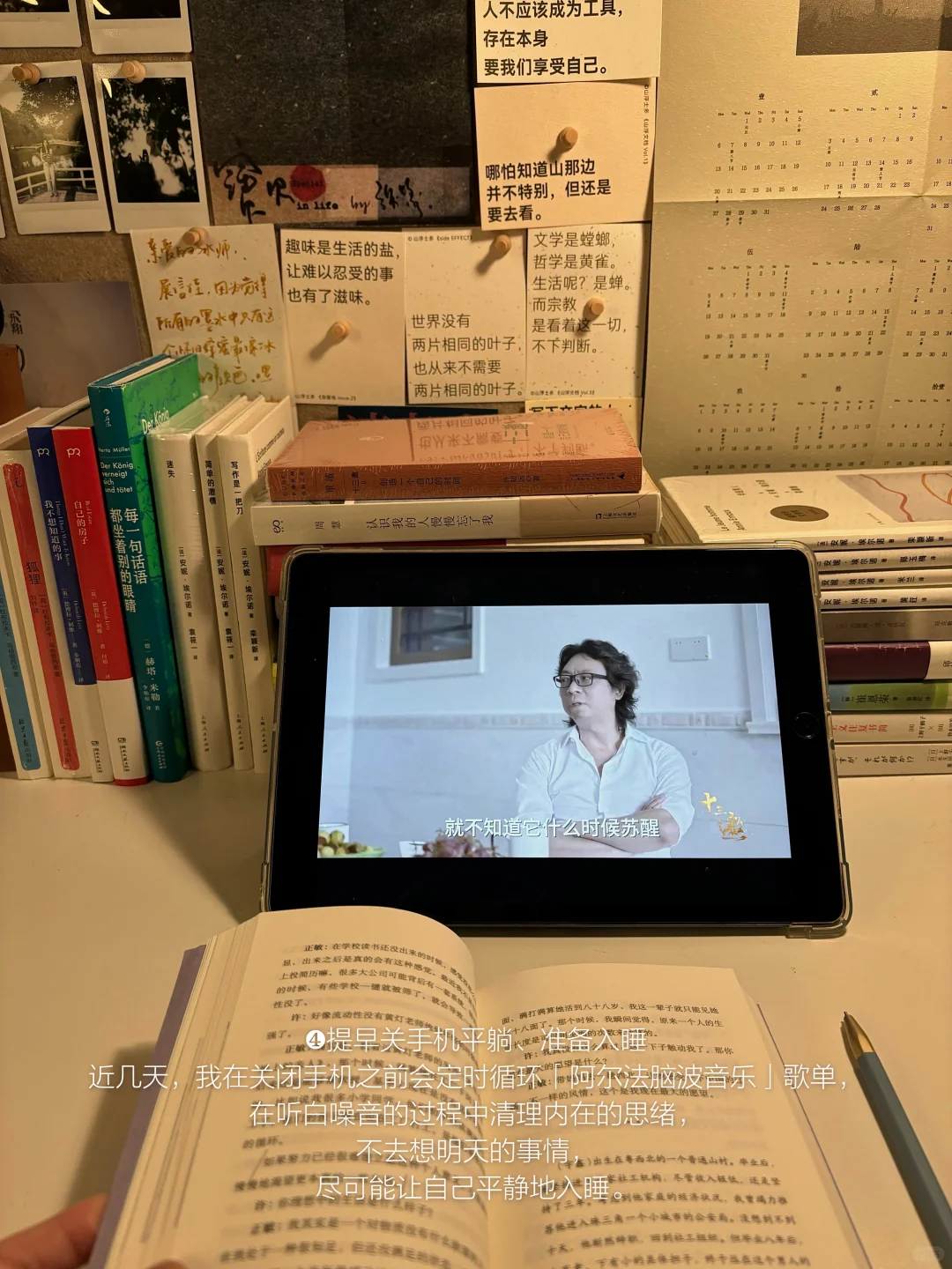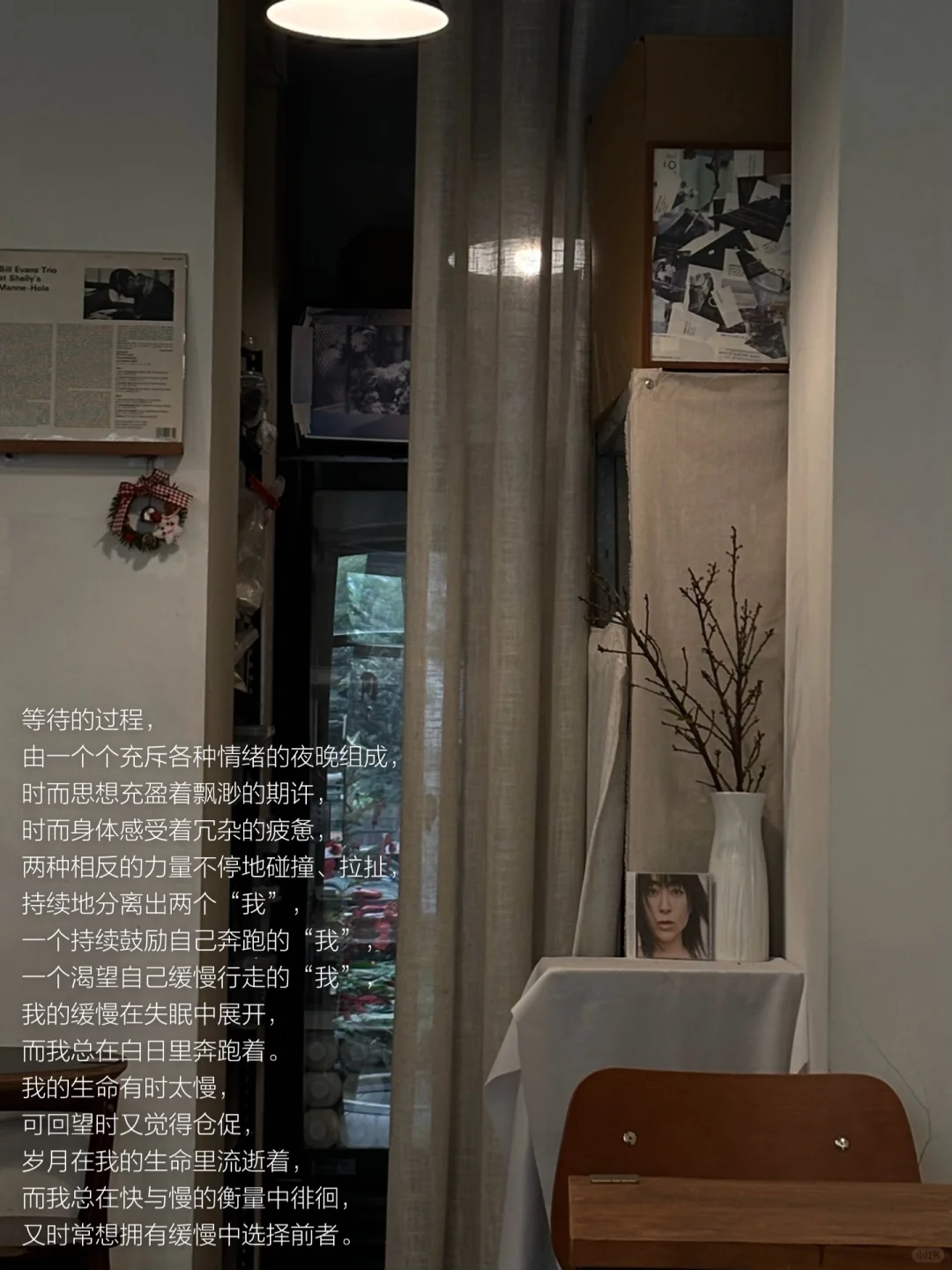生命的紧绷感时常充斥着生活里的种种状态,小升初、初升高、高考、考研、工作…而工作的状态被细分为一个个deadline。等待是我当下的生命状态,等待一个夜晚,等待一个周末,等待一个节日,等到悲伤消弥、喜悦溢满身体,等到尝试的思想主动进入生命,等待一个身体被自我允许休憩的时刻。