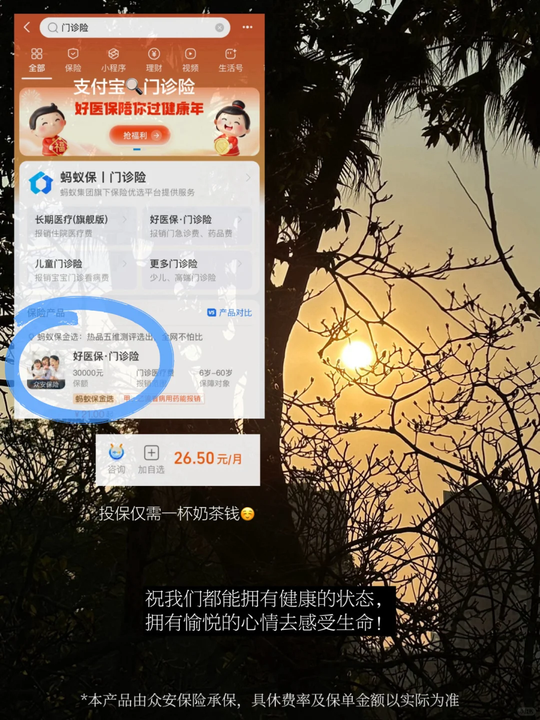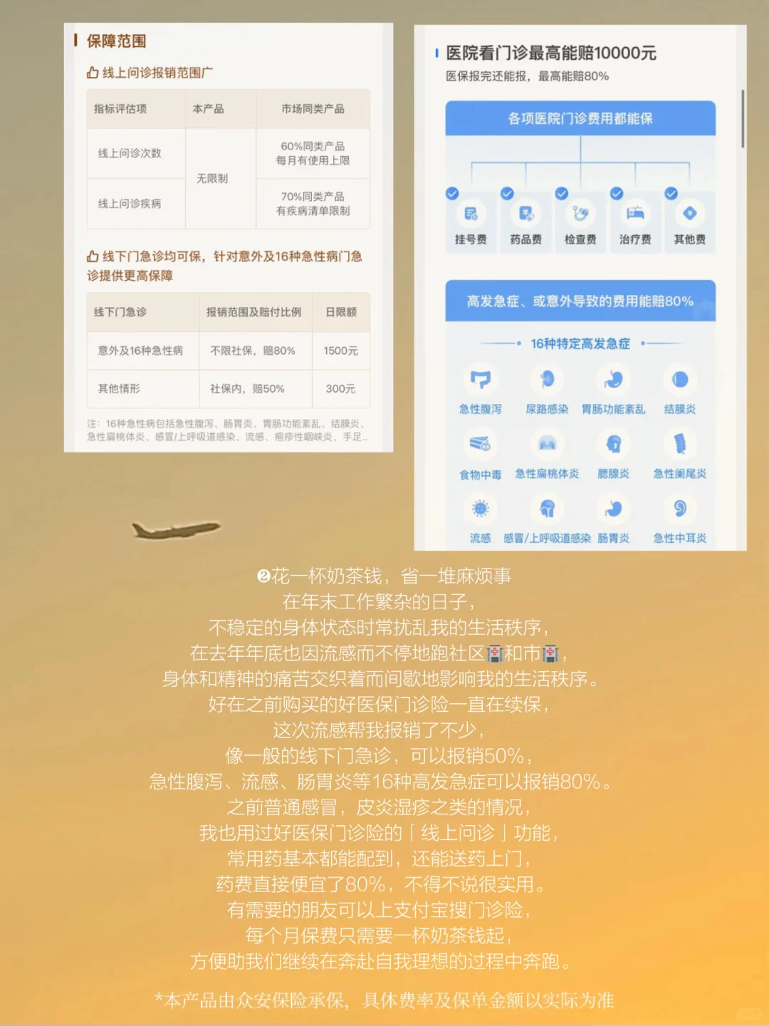 在年末工作繁杂的日子,不稳定的身体状态时常扰乱我的生活秩序,在去年年底也因流感而不停地跑社区🏥和市🏥,身体和精神的痛苦交织着而间歇地影响我的生活秩序。好在之前购买的好医保门诊险一直在续保,这次流感帮我报销了不少,像一般的线下门急诊,可以报销50%,急性腹泻、流感、肠胃炎等16种高发急症可以报销80%。