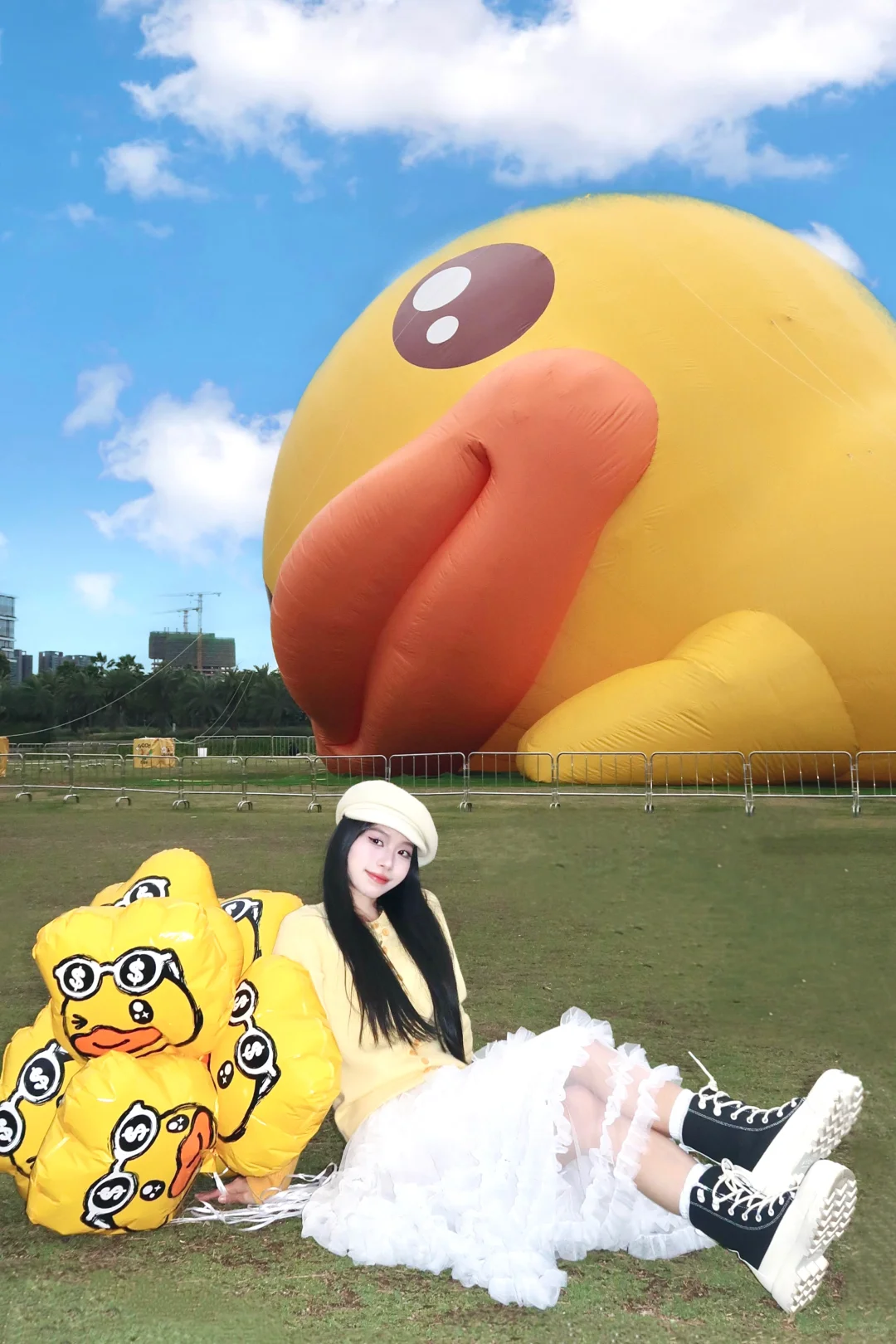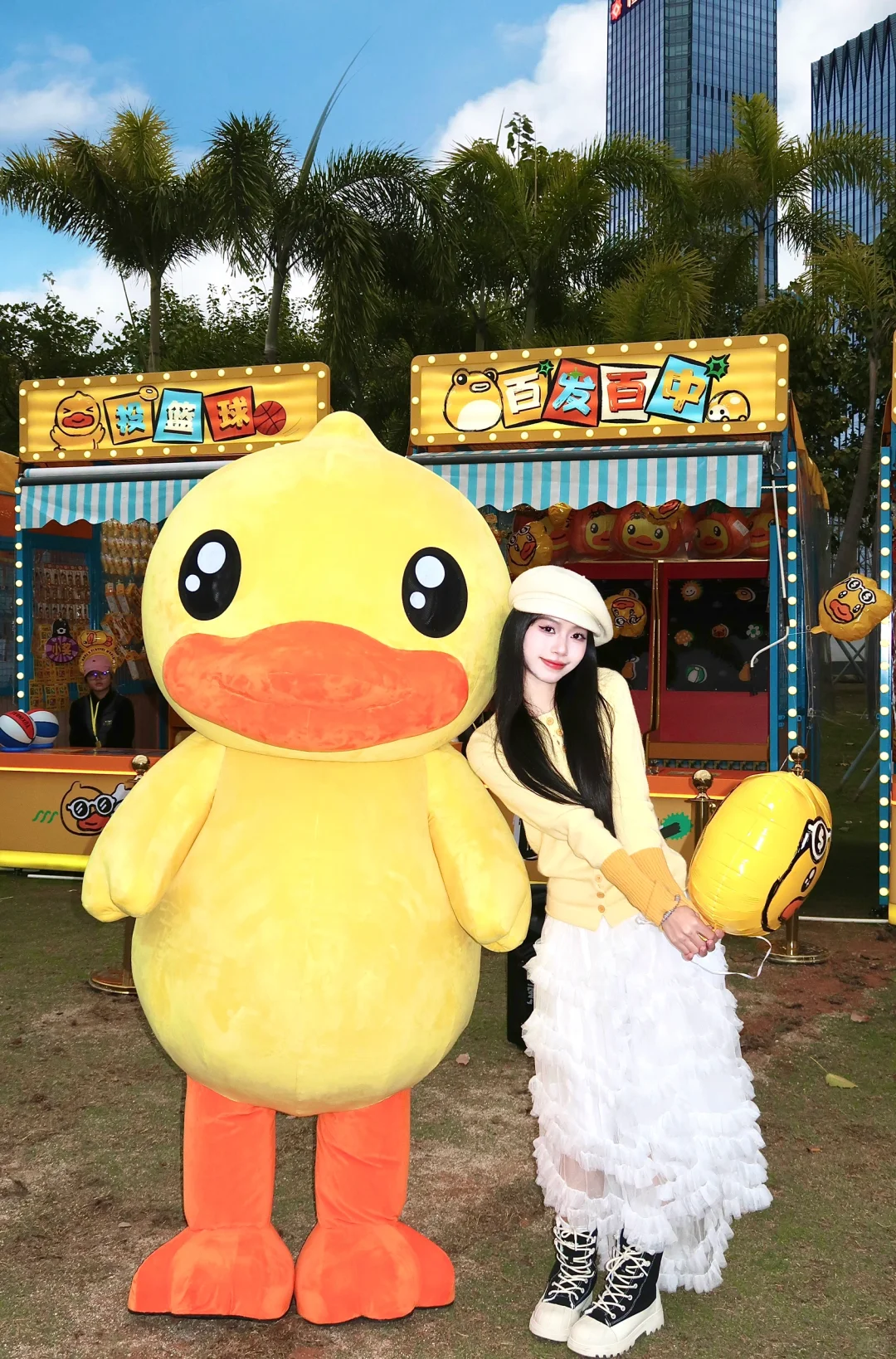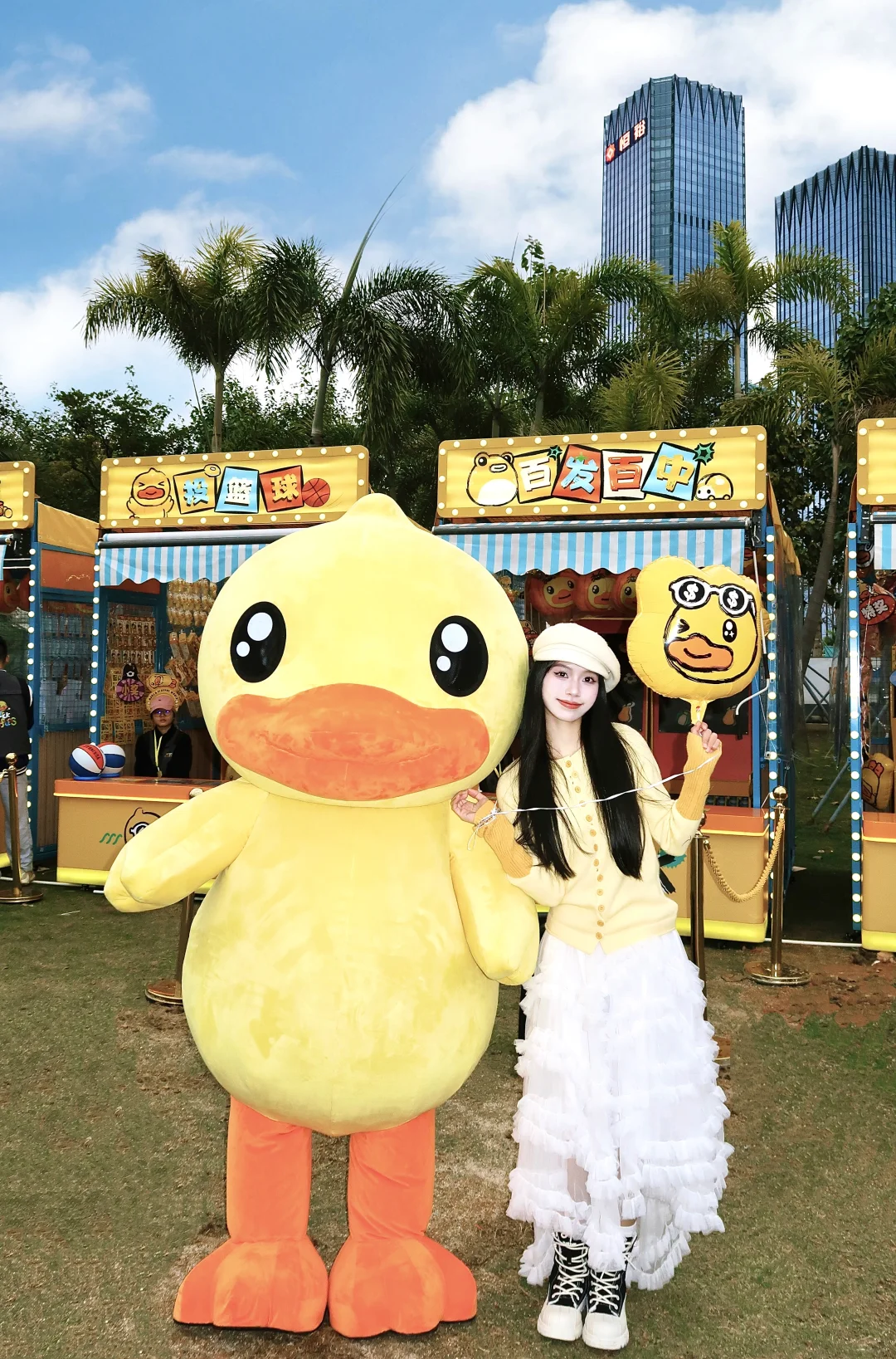 周围还有鸭鸭快闪店、蹦床以及游戏摊位
