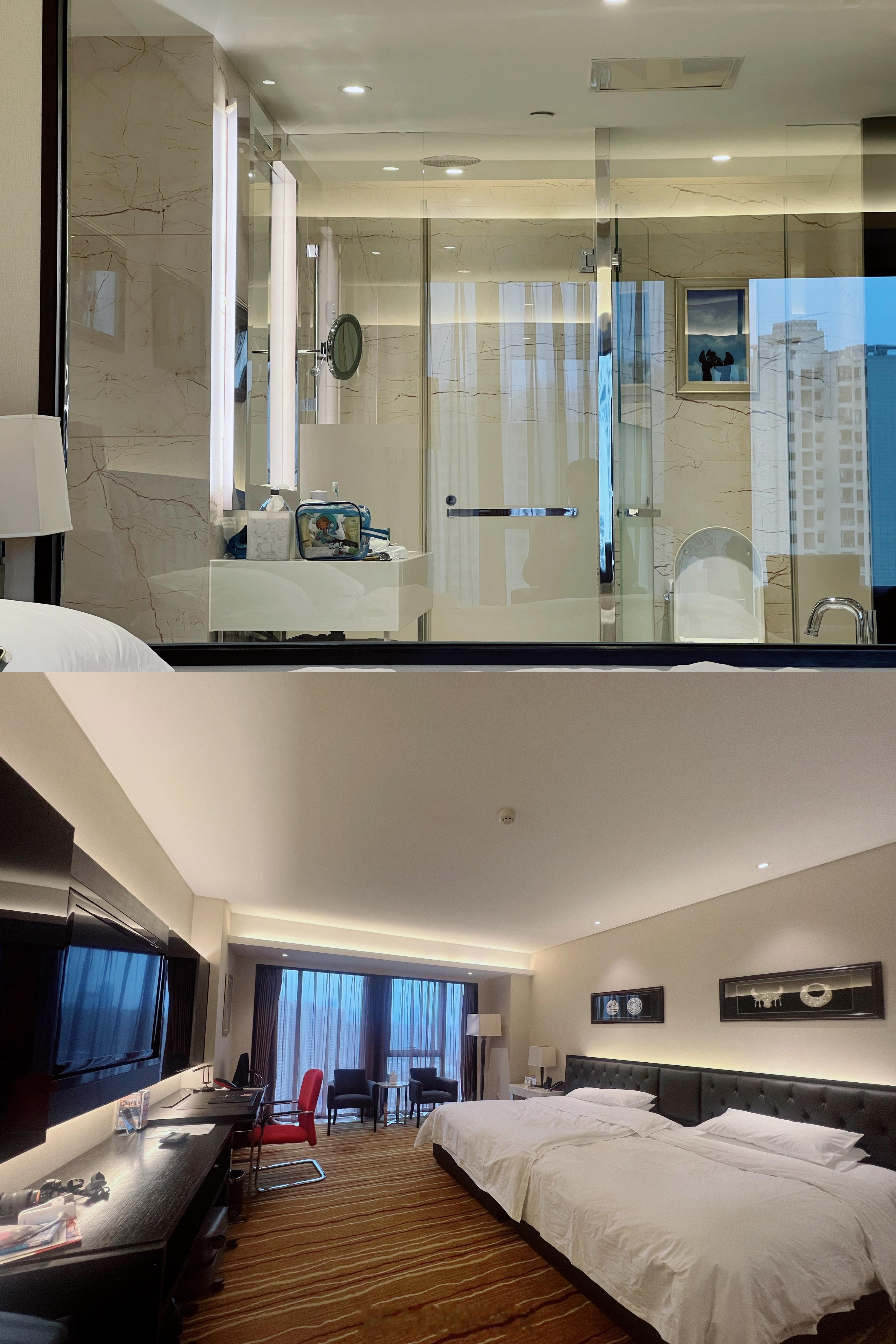 具体到这家Pullman,已有沧桑岁月痕迹,整体硬装相当于临沂铂尔曼格局水准,5楼空中花园是亮点。酒店未设中餐厅,行政酒廊春节期间停业,有大堂吧和普罗旺斯西餐厅提供餐饮服务,不过二七路小吃街就在楼下,离万象城也很近,总体看性价比算高。