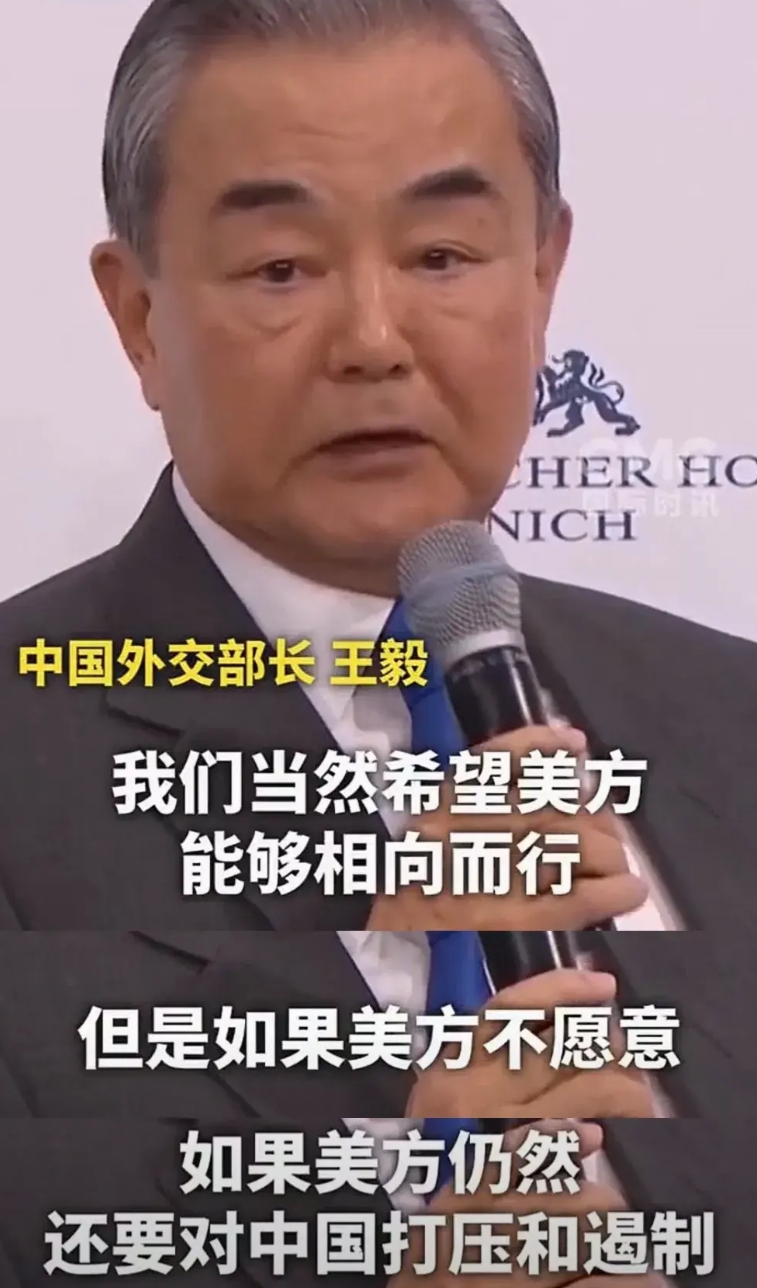 王外长就是王外长,不服不行。2月14日,在第61届慕尼黑安全会议问答环节,王毅外长用三个“必将”和几句话不仅把中国对美国对我们做什么后我们会做什么跟全世界说的清清楚楚,而且有力、可信和不容置疑。