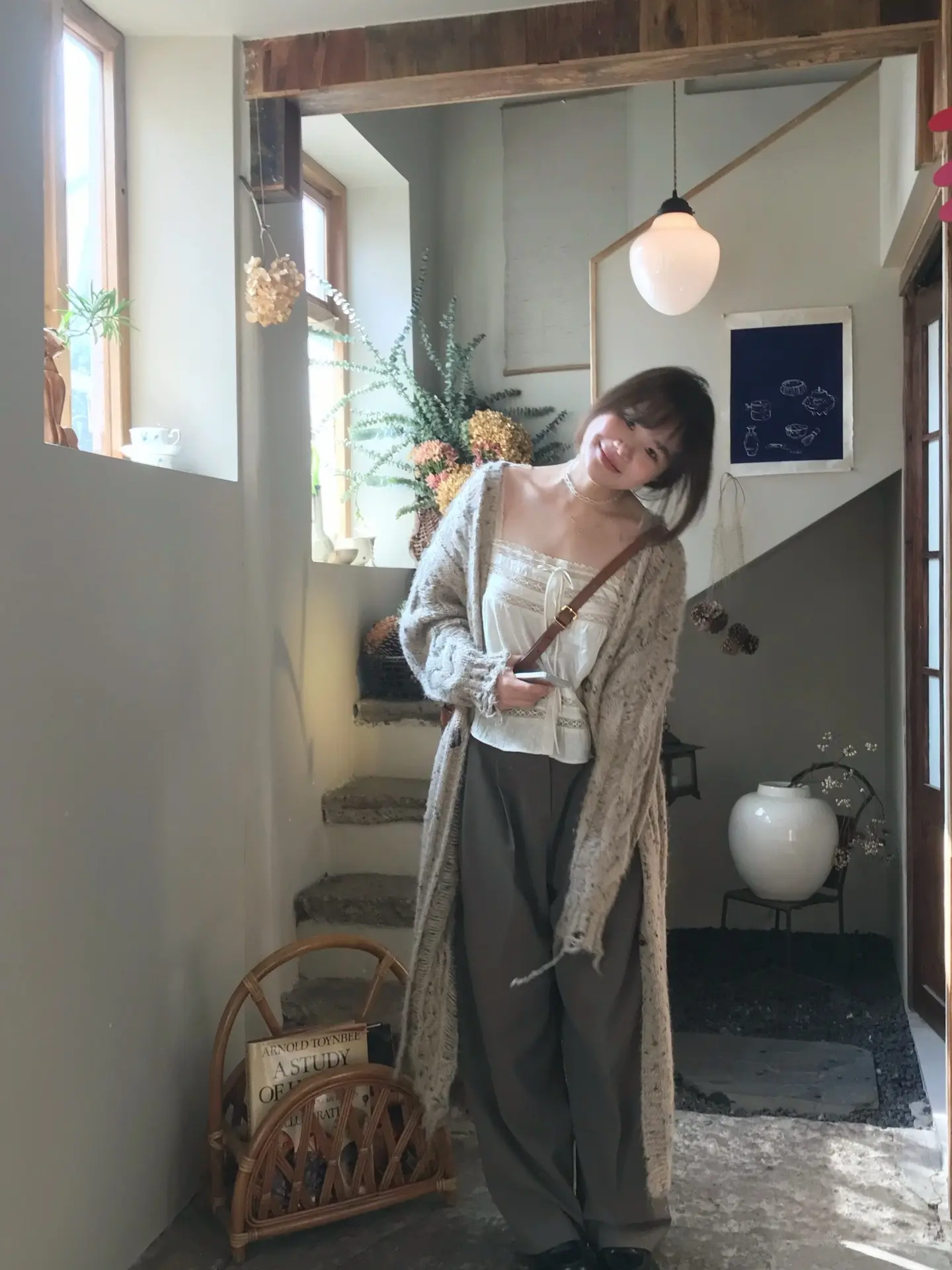 优雅白裙少女,静坐咖啡馆,时光静好