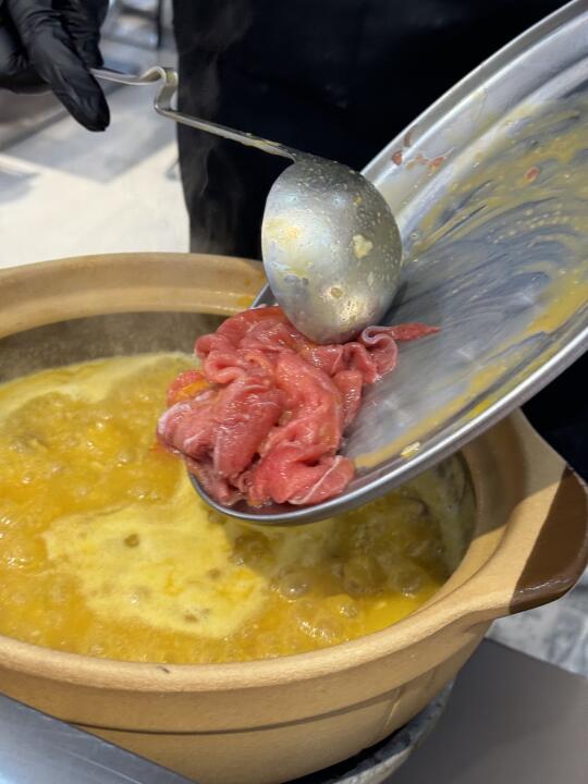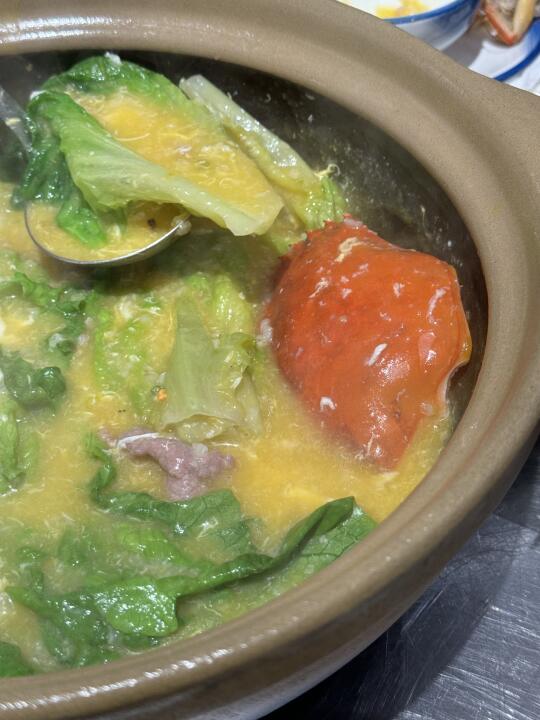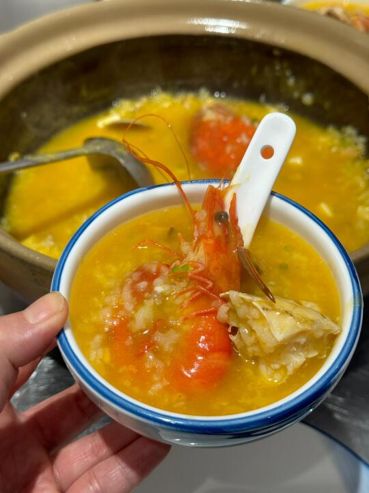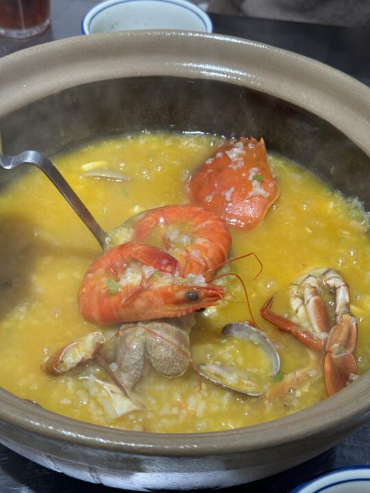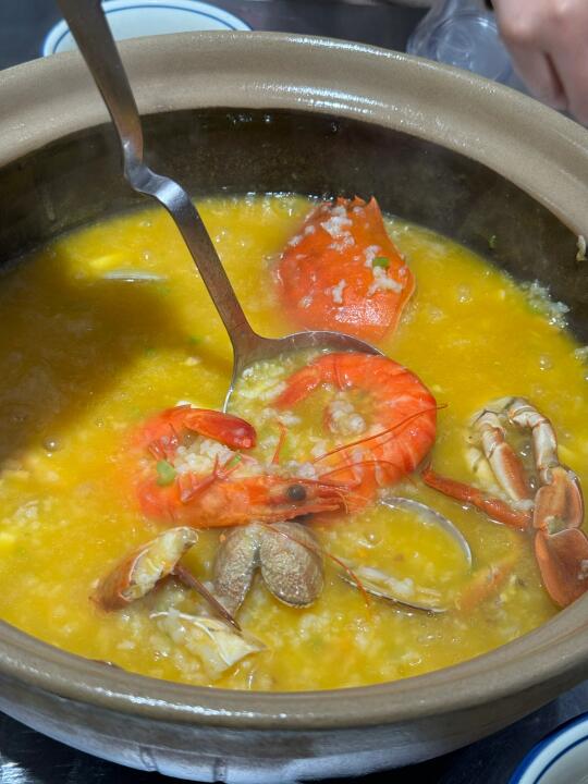 一个字绝,来苏州和朋友经常感叹咋就没有好吃的砂锅粥呢,无意当中打卡了这家店,蟹和虾都很新鲜,配上丰富的配料,熬好的南瓜粥倒进去煮会儿就可以开吃鲜的不行,建议买个套餐性价比更高,吃完涮牛肉青菜!油条放进去烫一下好吃😋