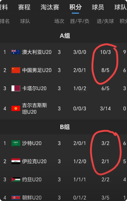 淘汰赛碰沙特是中国U20最好的结果了! 两轮过后,c组和d组的伊朗净胜球9个,进