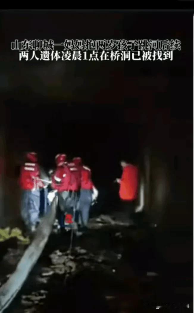 母亲把2岁孩子绑在身上跳河轻生,三天后,在桥洞下面,找到两人的遗体。 2月19日,山东聊城,凌晨时分,街上灯火通明,白雾夹杂着寒风,向四处弥漫开去。 这时,某小区某幢某楼,一位年轻女人蝶盈,身穿白色长款羽绒服,抱着2岁女儿走出家门。 透过昏暗的灯光,依稀看见蝶盈眼睛里闪烁着泪花,脸颊上挂着泪痕。 转眼间,蝶盈抱着2岁女儿,来到二干渠周公河边。 她拿出手机,不知道给谁打电话,也不知道她说什么? 一会儿,蝶盈将手机,放在河边草地上,她脱下白色羽绒服,放在手机旁边。 一瞬间,蝶盈用布带,把2岁女儿紧紧绑在身上,她鼻子一阵酸楚,泪水夺眶而出。 过了一会儿,蝶盈背着女儿,慢慢地走下河,两人消失在茫茫夜色中。 事发后,蓝天救援队在蝶盈和女儿,落水处200米范围,寻找未果。 然后,救援队在20公里搜索范围,仍然没有找到她们。 为了找到落水的母女,救援队抽干河水,在河底也没有找到她们。 2月22日,凌晨1时许,救援队抽干周公河倒吸虹桥洞下面的水,在桥洞下面找到两人的遗体。 据当地街道通报,蝶盈患有抑郁症,曾多次就医。 也许,事发当晚,蝶盈抑郁症发作,她的家人没有关心她,没有陪伴她,她产生轻生的想法,导致母女溺亡的悲剧。 文中人物为化名,