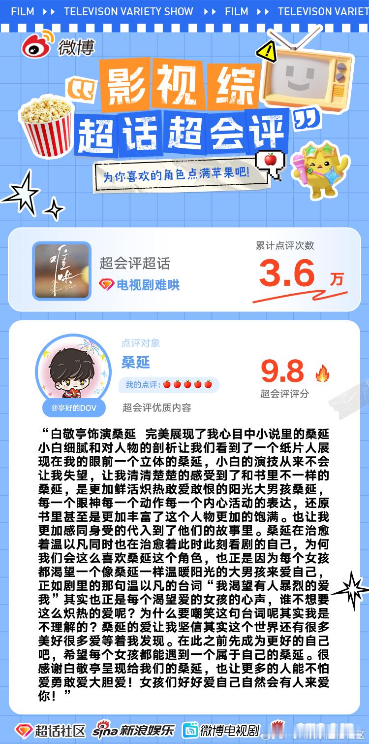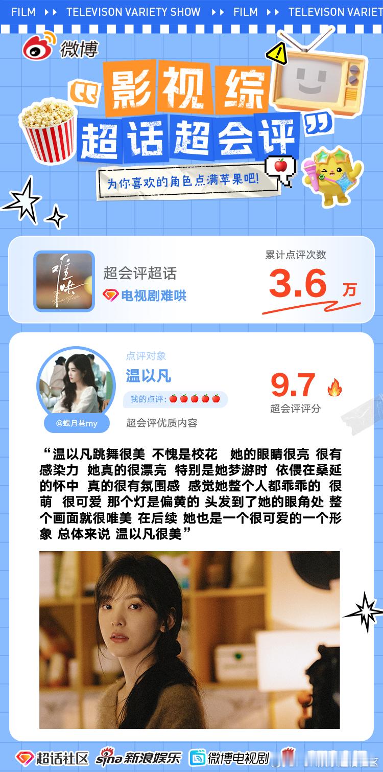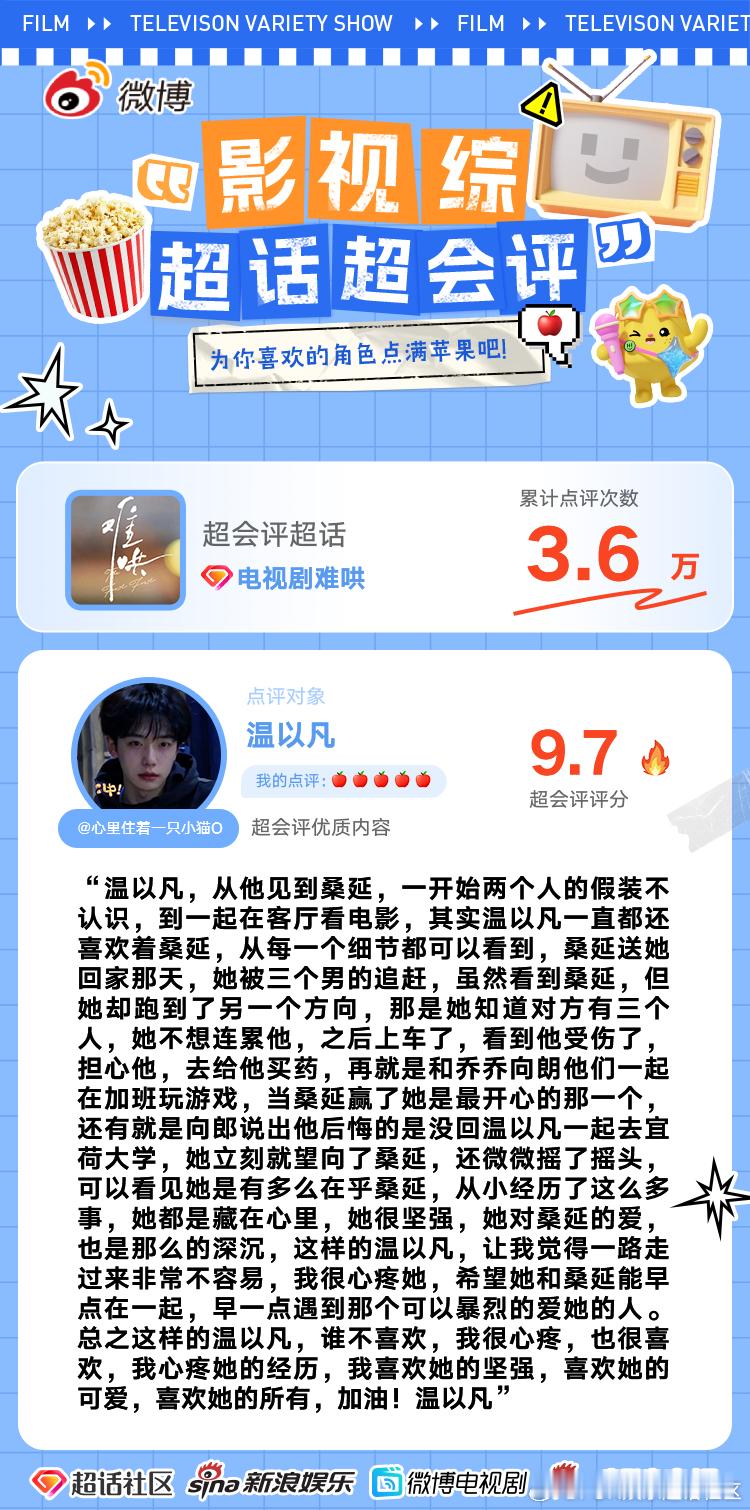 [嘻嘻]更多新剧超会评即将上线,欢迎uu们输出对角色的优质点评,活动发起请关注每月月初公布的活动PR!