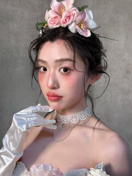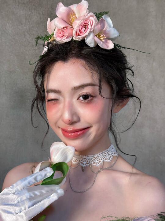 鲜花造型 氛围感鲜花造型发丝鲜花造型春天造型 氛围感妆容 鲜花皇冠造型粉色鲜花造型年青鲜花造型