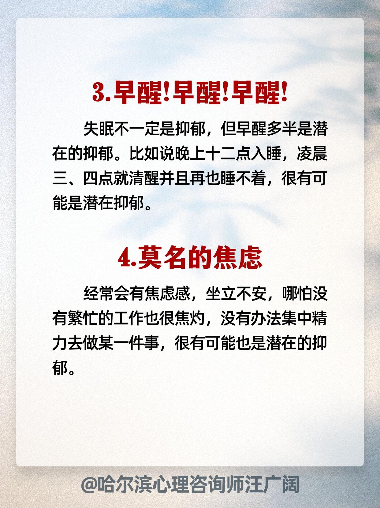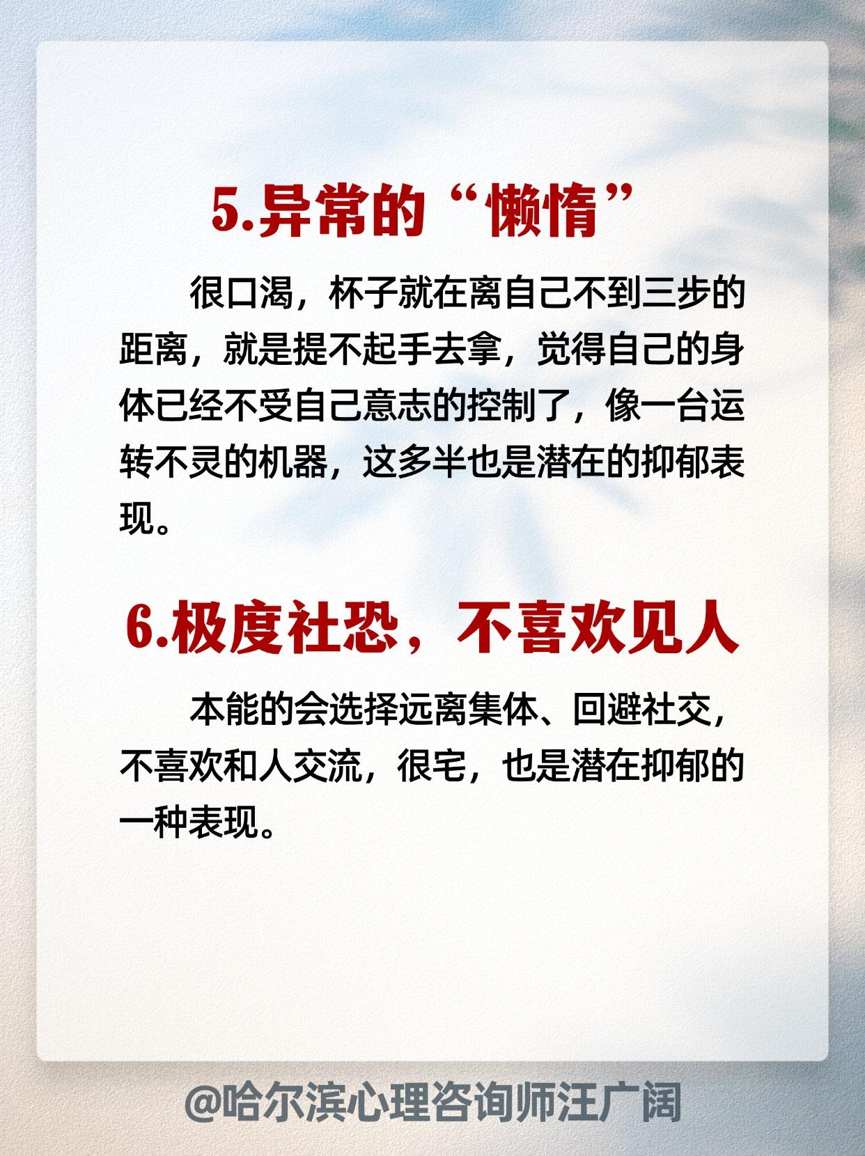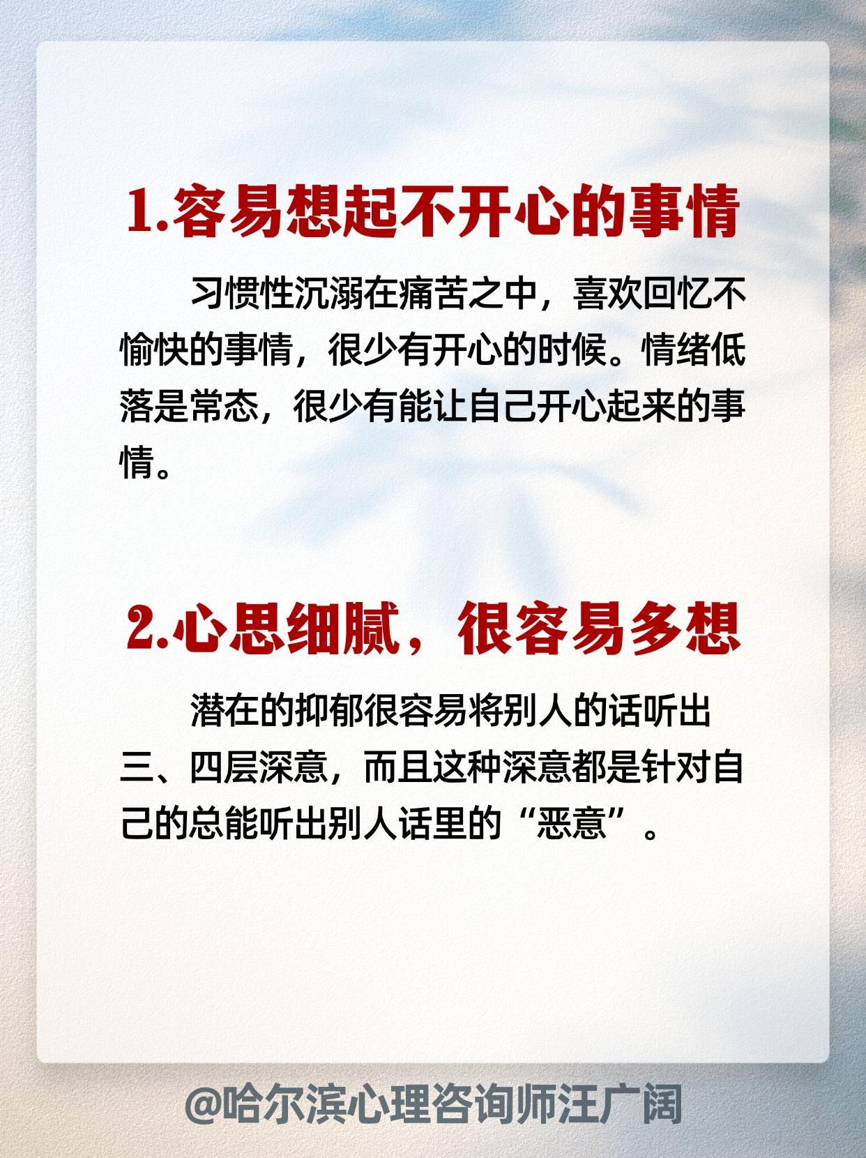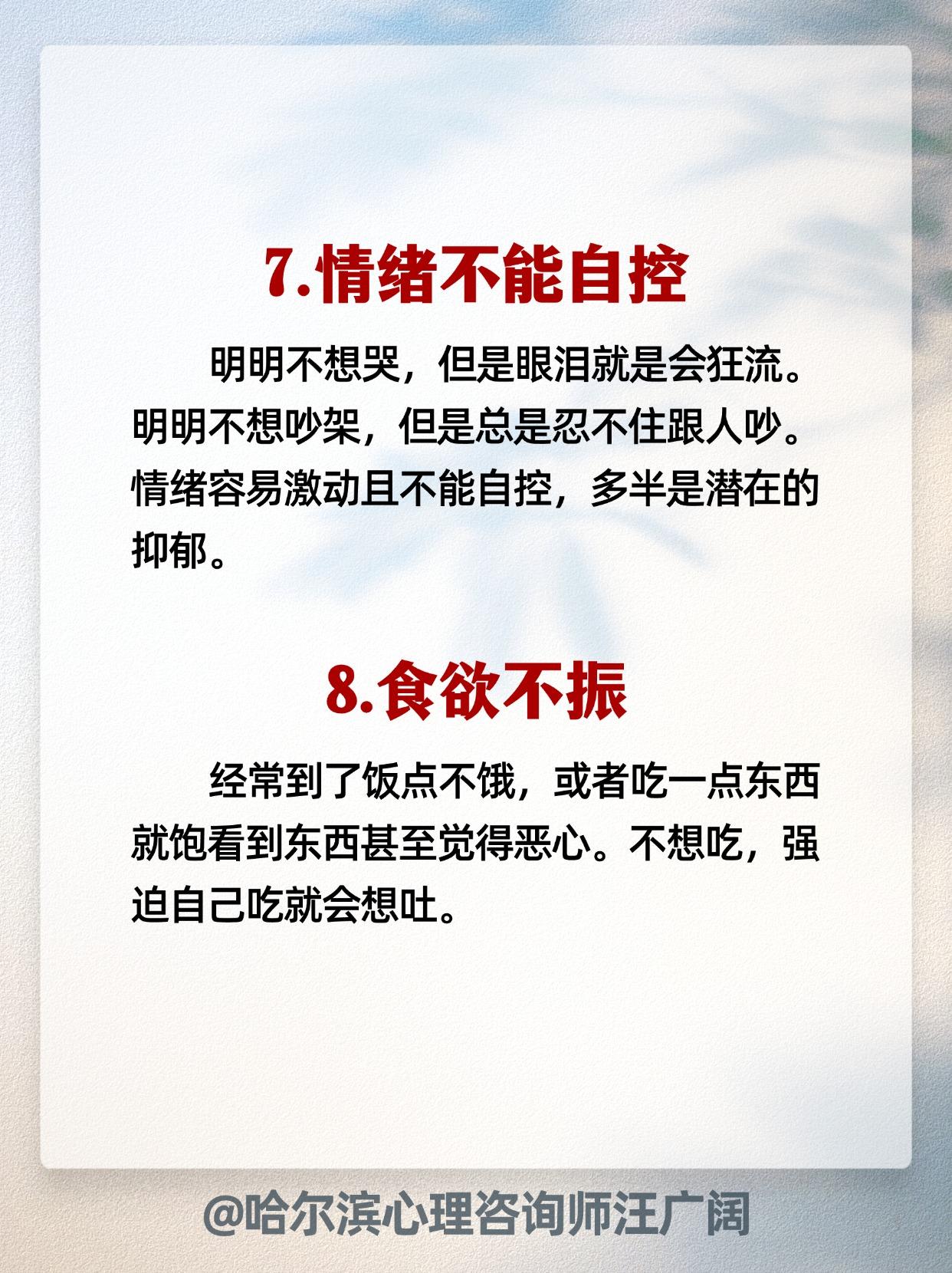中了6条及以上 要警惕!抑郁心理。