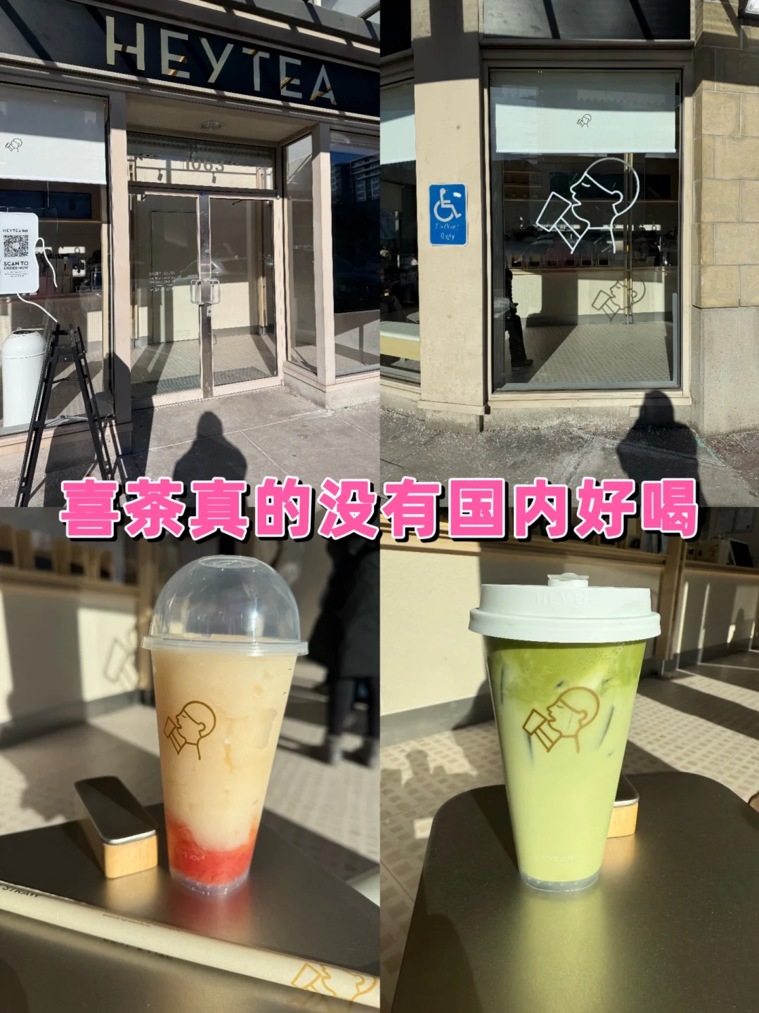 [炸弹R]【喜茶】我说实话,真的没有国内好喝,点了满杯红柚要的半糖,除了甜,一点果香和茶叶的味都没有,完全就是一杯齁甜的饮料,不甘心以为加拿大的喜茶特色不是水果茶,第二次又去点了一杯抹茶拿铁,完完全全就是一杯甜甜的饮料,一点茶香味,抹茶味都没有,两次踩雷可以了,不会再去了,跟国内的喜茶口感不一样