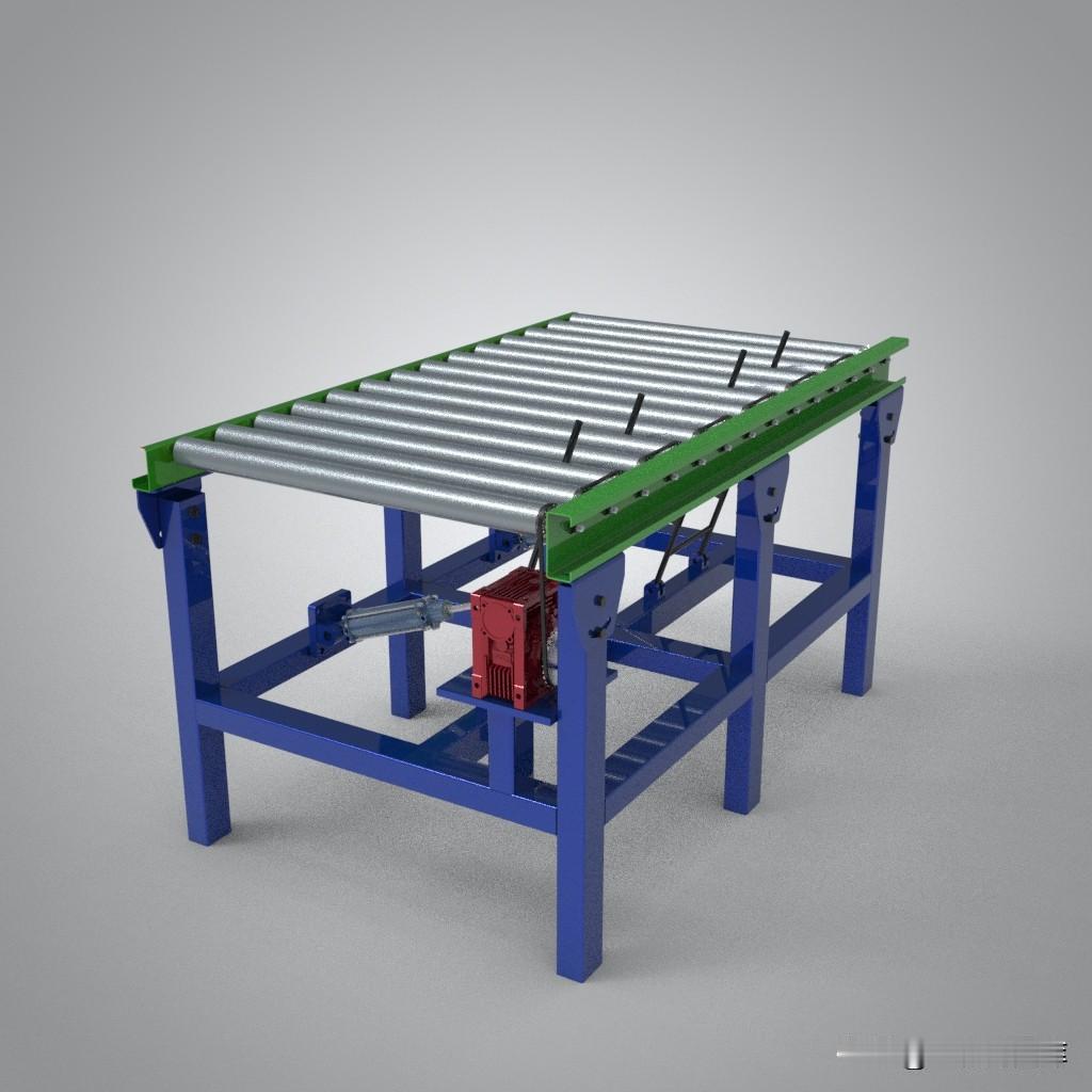 含横向推进机构的滚筒输送机设计模型免费分享: 一种结合了传统滚筒输送机和横向气动推进机构的创新设计,主要用于实现物料在输送过程中的横向移动或分流转运。 至和网分享链接: