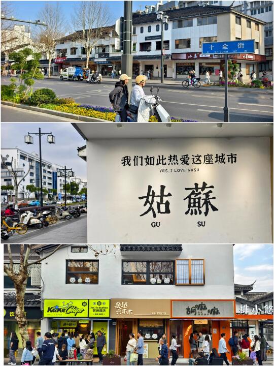 🔥十全街是苏州古城最具代表性的历史街道之一。千年流转,这里依旧保持着苏州典型的水城格局,水陆并行、河街相邻,尽显苏式风情。 🔥如今的十全街,除了有很多老店、老字号,又多了各类潮流新店,年轻态、新业态给这条老街带来了巨大的流量。 🔥十全街上餐饮店众多,想出圈并不容易,大家各显神通。店实在太多了,逛吃一天都打卡不完。 🔥日夜都在排队的尚食卢记,主打盐酥鸡+烧饼。(P3/P4) 🔥九十页,主打抹茶冰淇淋。(P5) 🔥两家红楼,各式果汁+gelato。(P6) 🔥嘿啰面包,网红面包店,很多面包出品不错。(P8) 🔥TOS,黄油多士很好吃。 (P9) 🔥Tohee ,泰式风味饮品,泰奶冰淇淋&奶茶很值得尝试一下。(P10) 🔥麻雀咖啡[搜索高亮],苏州咖啡三大巨头之一,以其独特的风味和舒适的氛围吸引着众多咖啡爱好者。(P11) 🔥fufuland,生乳舒芙蕾。(P13) 🔥祥鑫、馋老沛、原点食堂、笃笃笃糖粥等传统饮食。(P14)