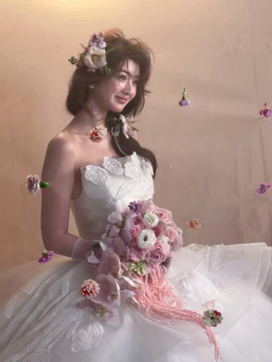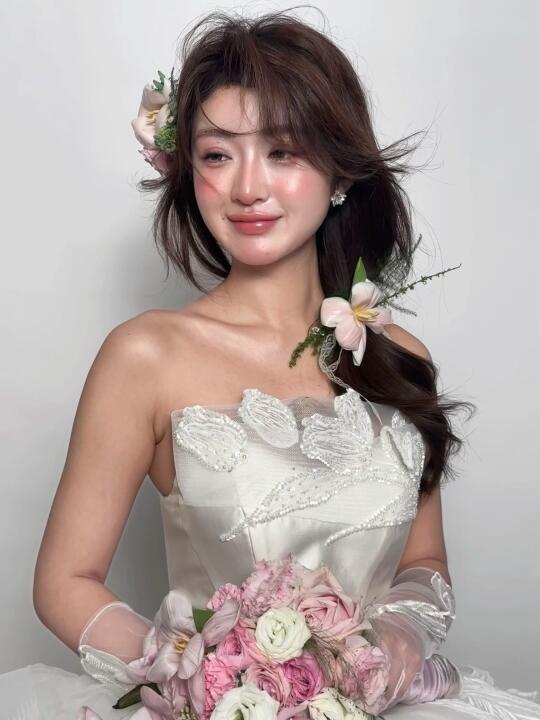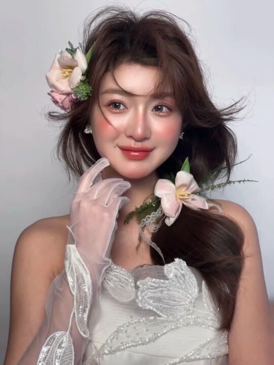 鲜花造型 氛围感发丝 干净清透妆面 氛围感鲜花造型春日造型 2025新娘流行鲜花造型 森糸造型 新娘造型 春日妆容 清新自然的小森系