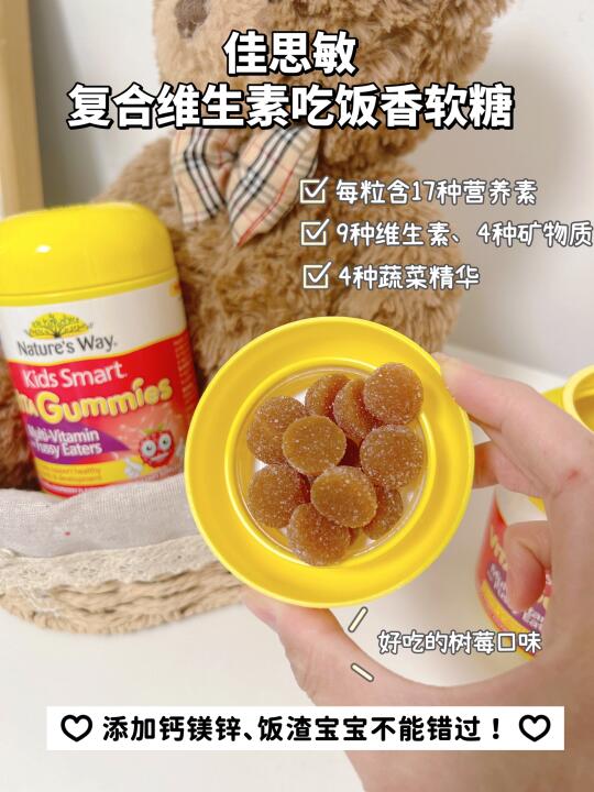 女儿现在越大是越有自己的思想了,经常这个嫌不好吃,那个嫌吃不下。每次为她吃饭问题都是伤透脑。现在又是长身体的时候,害怕她营养跟不上。 带着她逛山姆的时候,无意中发现了佳思敏复合维生素吃饭香软糖,一下戳中女儿的心。没想到吃糖也能补充到营养,对我们这种挑三拣四的孩子来说真是好登西! 吃过后确实感觉很不错,这次又来山姆给孩子续上,还入了佳思敏钙软糖和佳思敏维C软糖😄 再次感叹,山姆严选不是吹的,每款都能选到我的心坎里! 🌟佳思敏复合维生素吃饭香软糖,每颗含有9种维生素+4种矿物质+4种蔬菜提取精华,共17营养素,特别添加了钙镁锌等矿物质营养,一粒补齐孩子每日所需营养,巨巨巨适合饭渣娃!澳洲TGA严格监管,孩子吃妈妈放心,树莓味酸酸甜甜,孩子不仅主动吃,还要追着要。 而且山姆还是特供大瓶装,一瓶120粒,家有饭渣娃的直接牢牢锁住吧! 🌟 佳思敏钙 ➕VD软糖,导购员说这款软糖每吃2粒相当于喝了一杯🥛,救命,谁懂饭渣娃妈妈的心,我家娃平时根本不喝牛奶,而且软糖还添加了维D,能够促进钙吸收,黄金钙磷比2:1,助力好吸收,喝牛奶肚肚不舒服的娃都可以吃!淡淡的香草树莓味,娃闻了一下就爱上。而且春季真是补钙黄金期,必须全款拿下~ 🌟 佳思敏维C➕锌软糖,Q弹酸甜的柑橘味,一天2粒相当于60mg维C≈一个橙子的VC,维C+锌黄金搭配,适合我家娃,因为不爱吃饭的连锁反应,上学经常缺勤,再加上现在春季,气温变化无常,这个能补充基础体质营养,家里一定要备上,身体棒棒,才能吃嘛嘛香✌️ 对了,这个软糖还有澳洲TGA的严格监管,说实话,佳思敏真的很让家长放心,品质真的真的很在线! 不想出门的宝妈们,直接在山姆APP🔍就可以入手的,超方便的呢~ 有同样困扰的妈妈们,跟着抄作业吧!