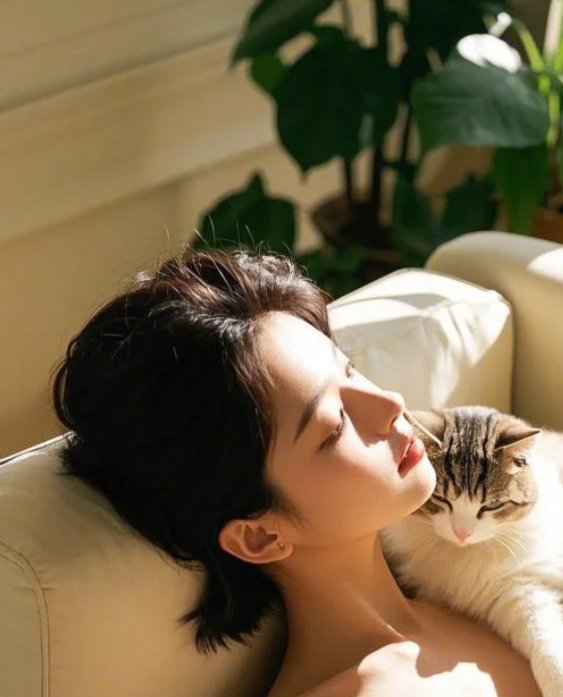 猫咪依偎,小姐姐的柔情似水
