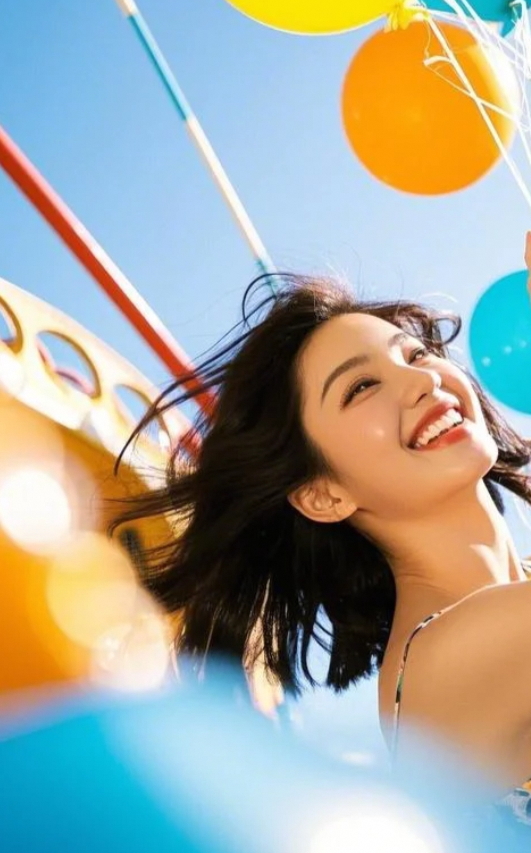 游乐园里的绝美瞬间:小姐姐的欢乐笑颜
