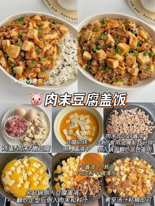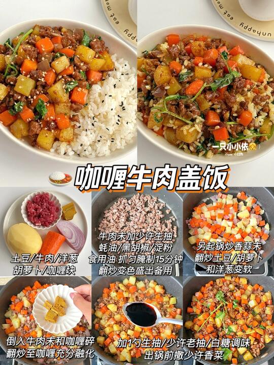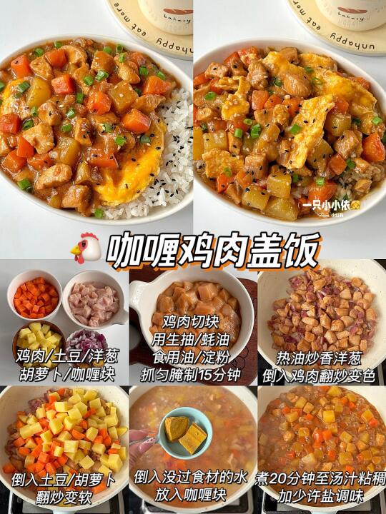 🧚‍♀️哈喽饱饱们!好久不见想鼠你们啦! [斜眼R]本期分享9️⃣款吃不腻的神仙盖饭,鲜美蔬菜搭配浓郁汤汁,有肉有蛋有米饭,营养满分💯轻松搞定饭渣!做法简单,一学就会✅新手妈妈友好~[大笑R] · ——✨9种吃不腻神仙盖饭✨—— · 🥚海苔鸡蛋酱盖饭 🐟鱼香鸡蛋盖饭 🐔咖喱鸡肉盖饭 🐮生菜牛肉盖饭 🍅茄汁肥牛盖饭 🍄香菇卤肉盖饭 🍛咖喱牛肉盖饭 🥬菠菜鸡肉盖饭 🐷肉末豆腐盖饭 · ✅食材及制作方法都在图片上啦,有不明白的姐妹欢迎举手提问! ✅调味根据宝宝口味酌情增减哦~ · 好好吃饭🍚快乐长大!下期见啦👋