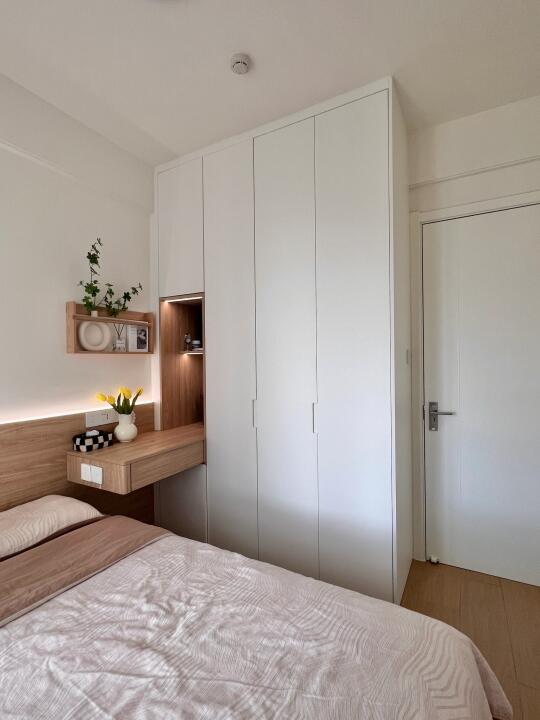 🏠我家原本是开发商交付的精装房,建筑面积:62,套内大概45平左右。当初交房的时候真心不喜欢,通过自己的想法装修,慢慢成为自己喜欢的样子,房子很小,也是我用心装修出来的家。 1、最大的改动也是最不后悔的就是敲掉原来的地砖和地板,换成自己喜欢的木纹砖。花费:1万2千+ 2、精装房入户柜门和厨房柜门全部换了。花费:1千+ 3、卧室门和入户门喷漆改色,厨房推拉门拆除。花费:2千+。 4、全屋通刷乳胶漆,花费3千+ 这些加起来差不多2万多点,2万多也花得值。 最后附上户型图[派对R]