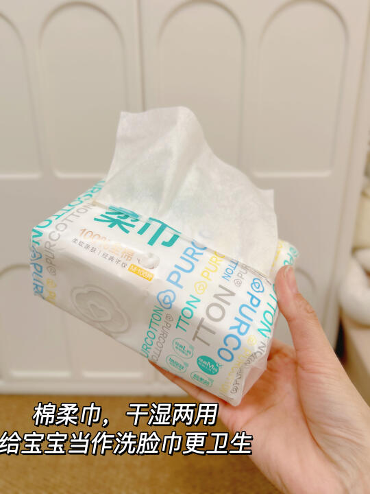 可以干湿两用的棉柔巾,取代了普通毛巾的位置,更卫生,纸张尺寸大,从小给宝宝洗脸洗pp都适合!100%纯棉材质,给宝宝用更放心,湿水也不掉絮,我平时洗脸也跟着用😄