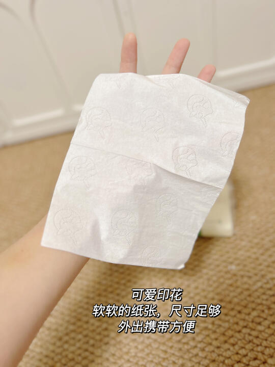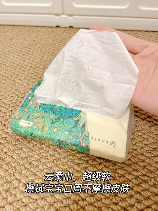 超软的纸巾,真的用它给宝宝擦拭一点不怕摩擦肌肤,新生儿宝宝娇嫩的肌肤真合适,100%原木浆,就是我也喜欢用,小小一包出门放包里也方便。