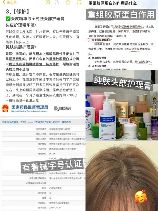 是医生推荐的,能从根本上缓解脂溢性头皮炎!刚拿回来就查了一下,它是医用级别的,而且它含有的重组胶原蛋白成分可以促进头皮受损屏障修复,抗炎修护,缓解脂溢性头皮炎的不适感,当天就迫不及待的去用了完就能感觉到瘙痒减轻了很多见到效果坚持用了四五次左右,头上的鳞屑就逐渐掉落,瘙痒感也都消失了,到现在一个月了脂溢性头皮炎也好的7788了~瘙痒感也一直没反复